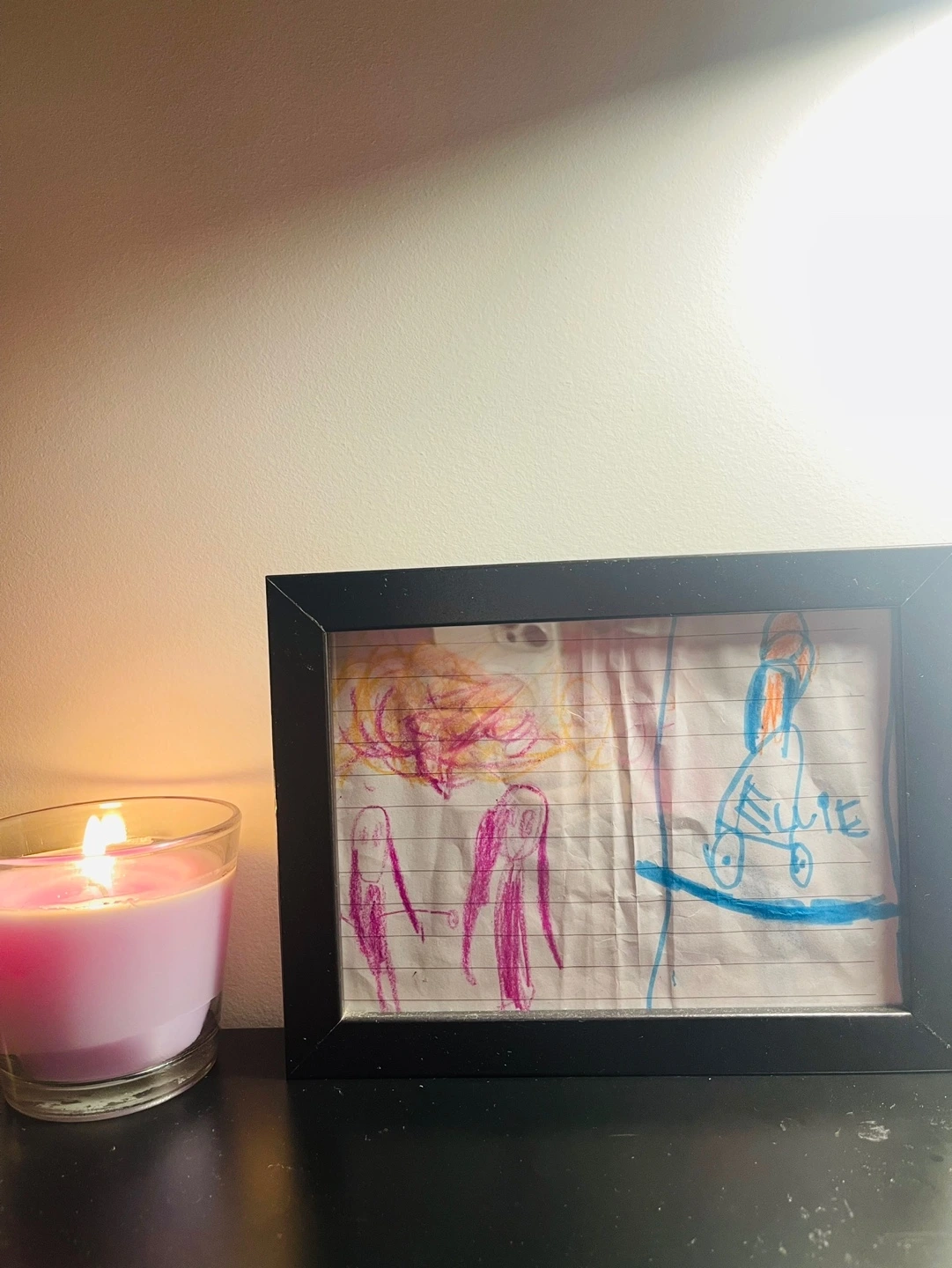 엘리의 그림은 소중히 액자에 넣어 책상 위에 올려놓았고요. 이 그림을 보면서 항상 엘리를 생각하겠죠.