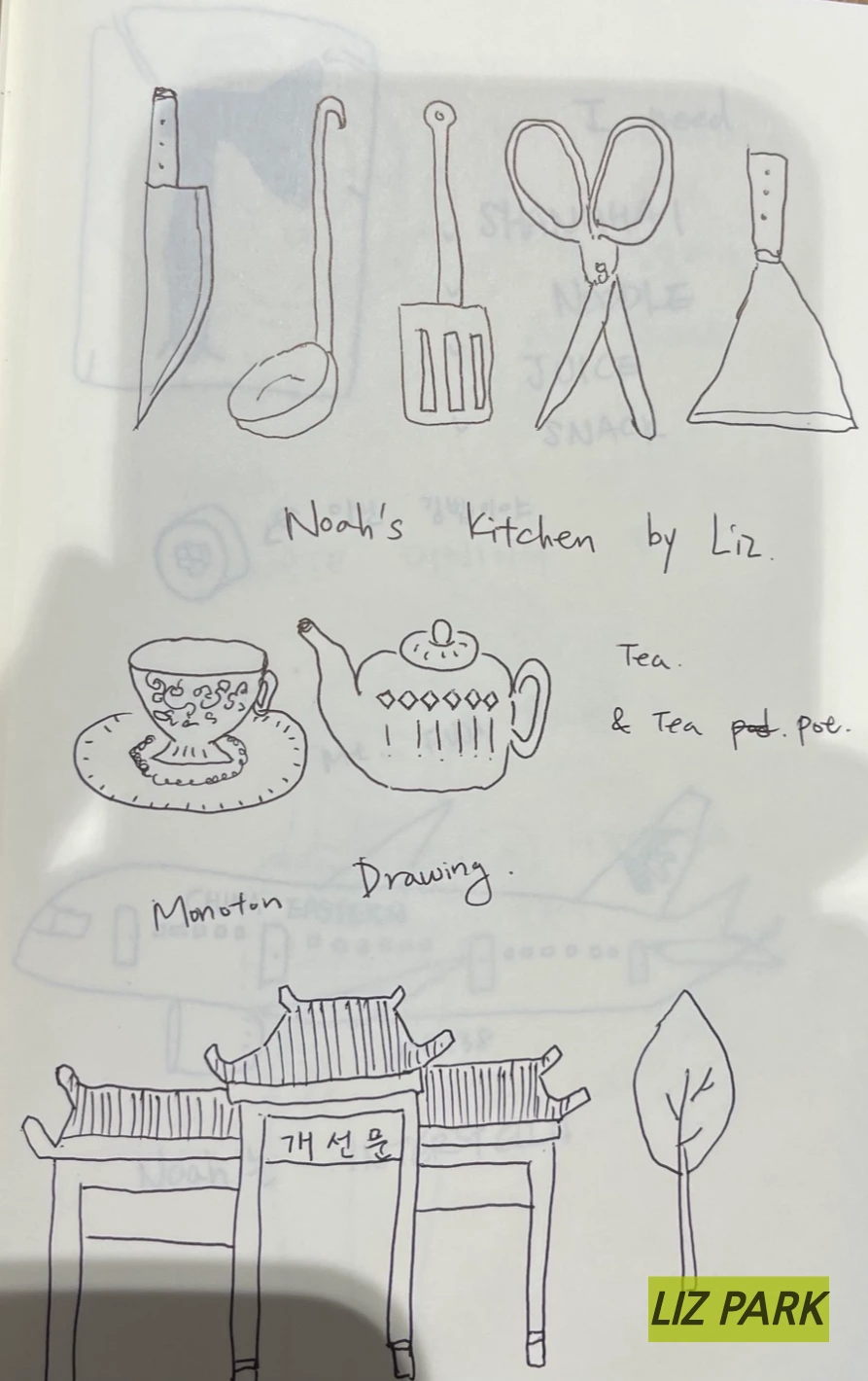 머릿속에 드는 생각들을 두서없이 갈겨서 쓰다가 주변을 둘러보며 그림을 그리기 시작했다.