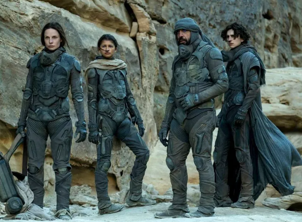 그토록 사막 같은 프레멘의 삶에서 생명과도 같은 물은 영화 내도록 ‘푸른색’으로 강조된다. 프레멘이 ‘이바드의 눈’이라고 부르는 이 현상은 아라키스의 특산물, 즉 ‘스파이스 멜린지’에 노출된 부작용으로 나타난다. ‘황토색’으로 가득 찬 이 건조한 행성을 전 우주가 제국을 만들어 침략하고 소유하려고 한 이유가 바로 이 ‘향신료’ 때문이라는 게 놀랍다. 그 버석버석한 모래에서 이 눈부신 가루가 추출된다니. 원작자 프랭크 허버트가 이 모티브로 서양사에 점철된 제국주의를 묘사한 점에 경의를 표한다. 황톳빛 사막 행성이 건져낸 ‘주황색’의 이 가루에 중독되면 신비롭게도 ‘푸른색’ 눈이 된다는 설정도 멋지다.