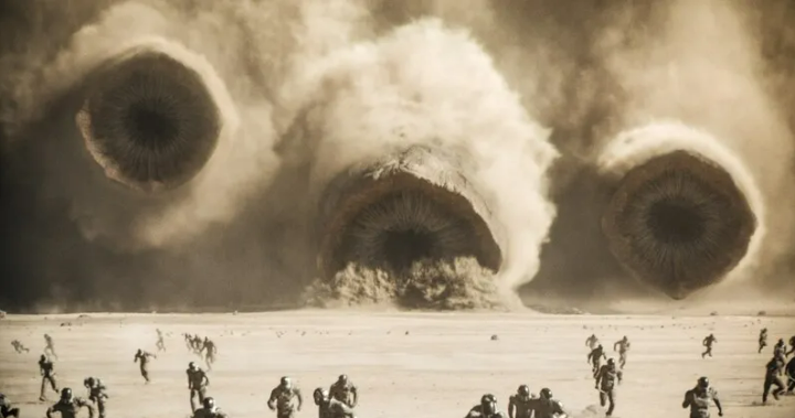 듄, 우리말로 ‘모래언덕’, 한자어로는 ‘사구(砂丘)’다. 왜 이렇게까지 이 영화의 영상미, 사막의 아름다움에 내가 푹 빠져 지냈을까 생각해보니, 나의 5월 자체가 좀 밋밋 혹은 우울했기 때문인 듯싶다. 영어사전에서 ‘dune’을 치면 ‘down’과 어원을 같이 한다고 나온다. 언덕을 오른다 해도 모래 때문에 발이 푹푹 빠져 내려가는 사막 아닌가. '듄'에서는 모든 게 '다운'된다. 어학적 지식을 더 깊게 언급할 순 없지만, 이 영화가 만들어낸 ‘아라키스’ 행성의 독특한 외계 생명체 ‘샤이 훌루드’, 즉 ‘모래벌레’를 불러들이려고 진동기를 사용할 때, 모래가 폭폭 꺼져 내려가는 장면은, 긴장감 못지않게 나에게는 왠지 모를 황홀감을 불러일으켰다. 아라키스의 원주민인 ‘프레멘’들은 이 모래벌레를 ‘위대한 창조주’라고 부른다. 그 신을 영접하기까지의 경외감, 그것은 두려움과 함께 묘하게도 설렘을 불러일으킨다. 그 순간을 맞이하게 된 인생은 최소한 밋밋하지 않다. 삶에서 그토록 찾아 헤매던 생의 절절함을 맛볼 수 있기 때문일 테다.