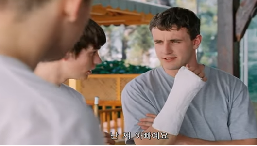 이 부분에서 흥미로운 대사가 아빠가 이미 또래 소년과의 딥키스까지 진도가 나간 딸에게 '아빠가 다 해봤으니, 솔직히 말해도 돼.'라고 말을 건넨다. 조금 더 들여다보면 딸과 소년의 스킨십의 시작이 딥키스였을 뿐, 그 끝은 영화에서 보여주지 않는다. 대신 딸이 혼자 숙소로 돌아왔는데, 아빠가 없어 잠겨버린 방문을 열 수 없으니, 뻘쭘하게 기다리는 장면이 다루어진다. 아빠의 의심은 숙소 데스크 직원에게로 향하겠지만, 실제 영화가 보여주는 초점은, 딸이 다른 방에서 두 남남 커플이 딥키스를 하며 사랑을 나누는 장면을 몰래 쳐다보는데, 아무런 놀람이 없다는 데 있다. 어떻게 해석하면 아빠의 걱정보다 딸의 성적 경험의 수위가 훨씬 높다는 데 영화의 방점이 있다. 아빠는 또래와의 이성애는 안심하면서도, 성인 남성으로부터 폭력적인 성경험에 대해서 걱정하고, ‘호신술’을 가르치며 ‘네 몸은 네가 지켜야 한다’를 강조한다. 그러나 정작 딸의 성 경험은 이성애를 넘어 동성애까지 그 범위를 확장하고 있다.