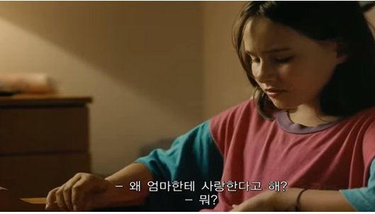 특별히 아빠와 엄마 사이의 갈등은 없는, 그러나 혼자서 아이를 키우는 엄마와, 혼자서 살궁리를 찾아 떨어져 지내는 아빠 사이에서, 딸은 아빠를 잠시 선택했다. 그래서인지 엄마와 통화를 끝낸 아빠에게 딸이 묻는다. ‘왜 아빠는 엄마한테 사랑한다고 말하는 거야?’ 왜냐하면 딸이 볼 때도 아빠와 엄마는 이혼했고, 각자 애인을 찾고 있는 듯한데, 왜 딸인 자신을 중간에 놓고 있을 때는 ‘마음에도 없는 말’을 하는 건지 궁금하기 때문이다. 그래서 아빠는 ‘가족 사이에서는 원래 그렇게 말하는 거야’라고 얼버무린다. 딸과 엄마의 관계에 대해서는 알 길이 없지만, 흔히 신파극에서 등장할 법한, ‘왜 아빠는 나를 버렸어?’라고 묻거나 ‘아빠가 너에게 참 미안해.’라는 식의 답은 없다. 그저 쿨한 아빠와 딸의 관계이다.