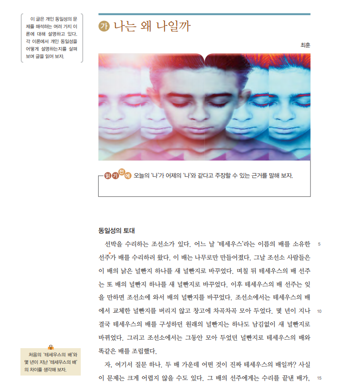 2. ‘나는 왜 나일까’라는 철학 텍스트(교과서 이야기니 지루하면, 패스!)