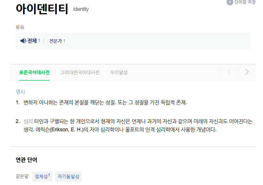 연구수업 전(前) 차시 교과서 본문의 개요는 다음과 같다. 영어로는 ‘아이덴티티(identity)’라는 개념어를 번역함에 있어 우리말은 ‘정체성(正體性)’이라는 단어를 선호한다. ‘변하지 않는 모양의 성질’이라는 뜻이다. 그리고 그 앞에 ‘자기(self)’나 ‘자아(ego)’니 ‘개인(individual)’이라는 단어를 붙여 이 정체성이 ‘인간’만의 고유한 성질임을 강조한다. 이름하여 ‘자기 정체성’이라고 부를 수 있다. 그리고 이 개념을 학문적으로 다룰 때 문제가 되는 요소를 ‘질적/수적’으로 따지는 측면에서 ‘동일성(同一性)’이라는 말을 철학에서는 선호하는 것 같다. 이 에세이에서는 ‘개인 동일성’이라는 용어로 사용한다. 인간이 다른 인간과 비교하여 자기 자신이라고 주장할 수 있는, 하나의 개체로서의 인간, 즉 ‘개인’이라 부를 수 있는 근거를 ‘질적(qualitative)’으로 ‘같다(同)’는 데서 찾고, ‘수적(numerical)’으로는 ‘하나(一)’에서 찾는다는 뜻이다.