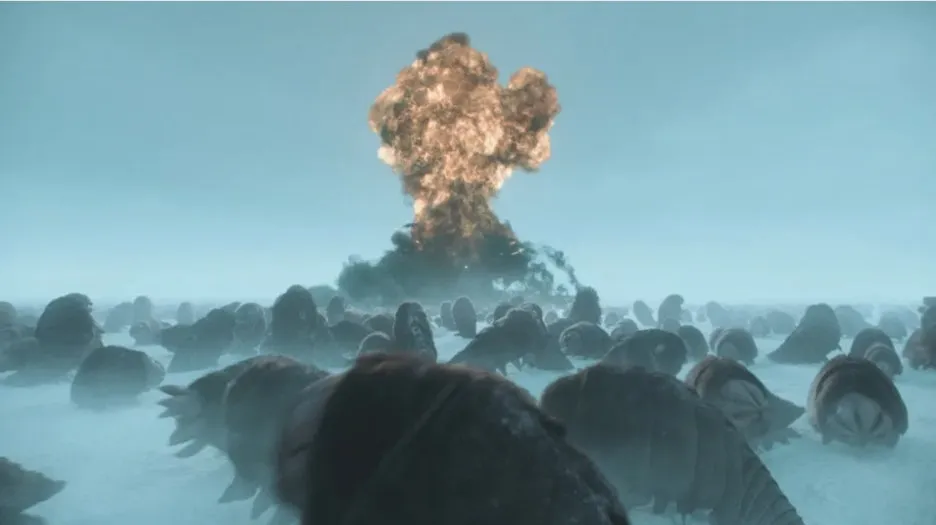 하지만 이 영화는 결정적으로 결말 부분에서 이전 작들과 다르다. 봉준호의 기존 작품에서 사회적 약자들의 몸부림은 거대한 시스템에서 좌절되거나 겨우 불씨와 같은 희망을 지켜내는 것에 그친다. 전작인 <기생충>과 <설국열차>에서는 결코 상승하지 못하는 하층 계급의 무기력함을 그리며 끝이 나고, <옥자>에서는 ‘미자’가 돼지 ‘옥자’를 구해내면서 보다 희망적인 결말을 그리지만 여전히 수많은 슈퍼 돼지들을 구해 내지는 못한다. 이런 전작들과 비교해 볼 때, 혁명을 승리로 이끌고 미키 개인이 인간으로서 주체성을 되찾는 모습을 그린 <미키 17>의 결말은 대단히 낙관적으로 보이기까지 한다. 봉준호의 영화에서 무엇이 이처럼 따뜻하고 동화 같은 결말을 가능하게 했을까?