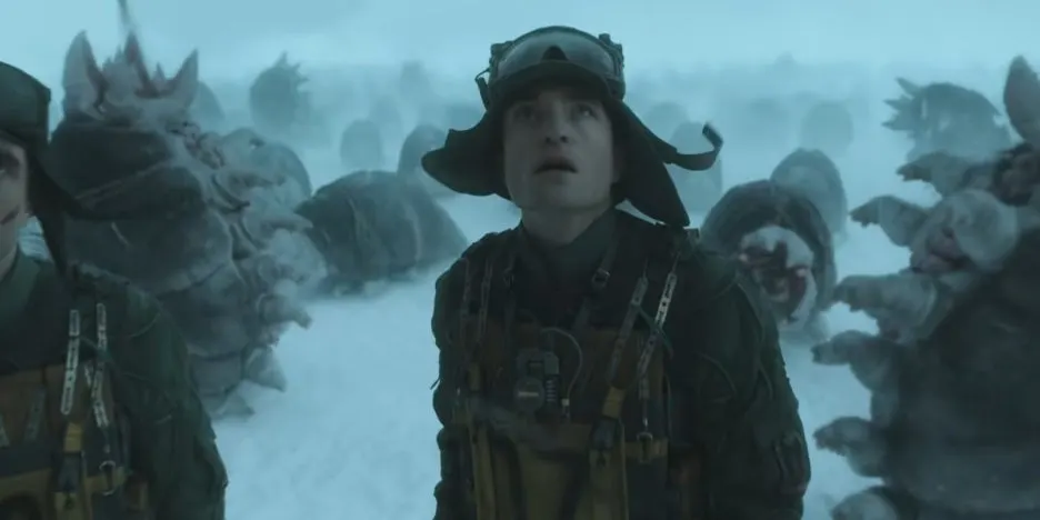 미키는 지나칠 정도로 자신이 처한 환경에 수용적이고 수동적이다. ‘미키’가 이렇듯 낮은 자존감과 자기 주체성을 가지고 있는 것은 ‘미키’가 과거에 가지게 된 트라우마와 사회적으로 반복 학습되어 버린 무기력함의 영향 때문인 것으로 보인다. <미키 17>의 자본주의 시스템에서 노동은 인간의 생계와 직결되지만 오직 이윤과 효율을 추구하고 그 과정에서 인간은 점차 자신이 수행하는 노동의 의미와 주체성을 상실하게 된다. 또한 이는 인간의 가치를 오직 도구로서의 ‘쓸모’로 판단하는 결과를 초래하기도 한다. 영화 초반, 크리퍼가 ‘미키 17’을 살려주었을 때 미키는 자신을 왜 살려주었느냐고, 나는 불량고기가 아니라고 말하며 화를 낸다. 이를 통해 당시 ‘미키’가 자신의 존재가 오직 쓸모에 의해 결정된다는 사실에 깊은 무력감과 자기혐오를 느끼고 있음을 추측할 수 있다. 아무도 원하지 않는 ‘익스펜더블’로 쓰이면서 여러 무시를 당할 때 그가 스스로를 얼마나 무가치하게 여겼을지. 그러면서도 한편으로는 고기로조차 쓰이지 않았음에 분노한다. 이를 통해 인간으로서의 자존감과 존중받기 원하는 마음이 깊게 남아 있음을 알 수 있다.