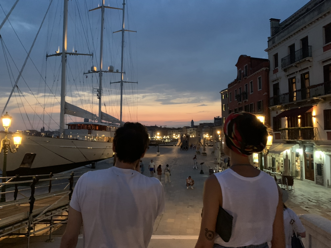 모두 술에 조금씩 취했을 때쯤, A는 담배가 피고 싶다고 했다. 나와 A와 E는 모두 담배를 습관적으로 피우지는 않는다. A의 말을 들으니 나도 덩달아 담배가 피고 싶어졌다. 담배를 사러 가리발디 거리로 갔다. 담배를 사러 나온 집 앞 거리가 이렇게 아름다울 수 있다니... 거리의 끝에 있는 다리 위에 서서 베니스의 반대편으로 해가 지는 모습을 보며 다 같이 담배에 불을 붙였다. 오랜만에 내 안으로 들어오는 담배연기는 내가 습관적으로 피우던 담배연기와 달랐다. 비로소 연기의 맛이 느껴지는 듯했고, 심지어는 꽤 맛있다는 생각이 들었다. 나는 담배를 피우며 노을을 바라보는 A와 E의 뒷모습을 사진으로 찍었다. 당시에 그 모습이 어느 정도로 아름다운지 알지 못했지만, 돌아보니 사진이 정말 아름답게 찍혀있었다. A와 E 모두 그 사진을 좋아했다. 나의 감각은 이렇게 도처에 널려있는 아름다움을 모두 인식하기에 턱없이 부족해서, 가끔은 이런 큰 아름다움은 내가 정확히 알지도 못한 채로 다가온다. 그것을 더 잘 감각하고 느낄 수 있도록 훈련해야 한다. 그리고 그것을 기억하기 위해 어떤 방식으로든 기록해야 한다. 그 기록은 종종 시간이 지나면서 그 기억들을 사실에서 크게 벗어나지 않는 선에서 미화시키기도 한다. 나는 이렇듯 사실보다도 더 아름다워진 기억들을 간직하며 살아가는 사람이다.