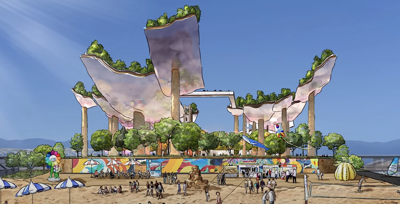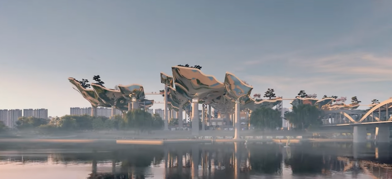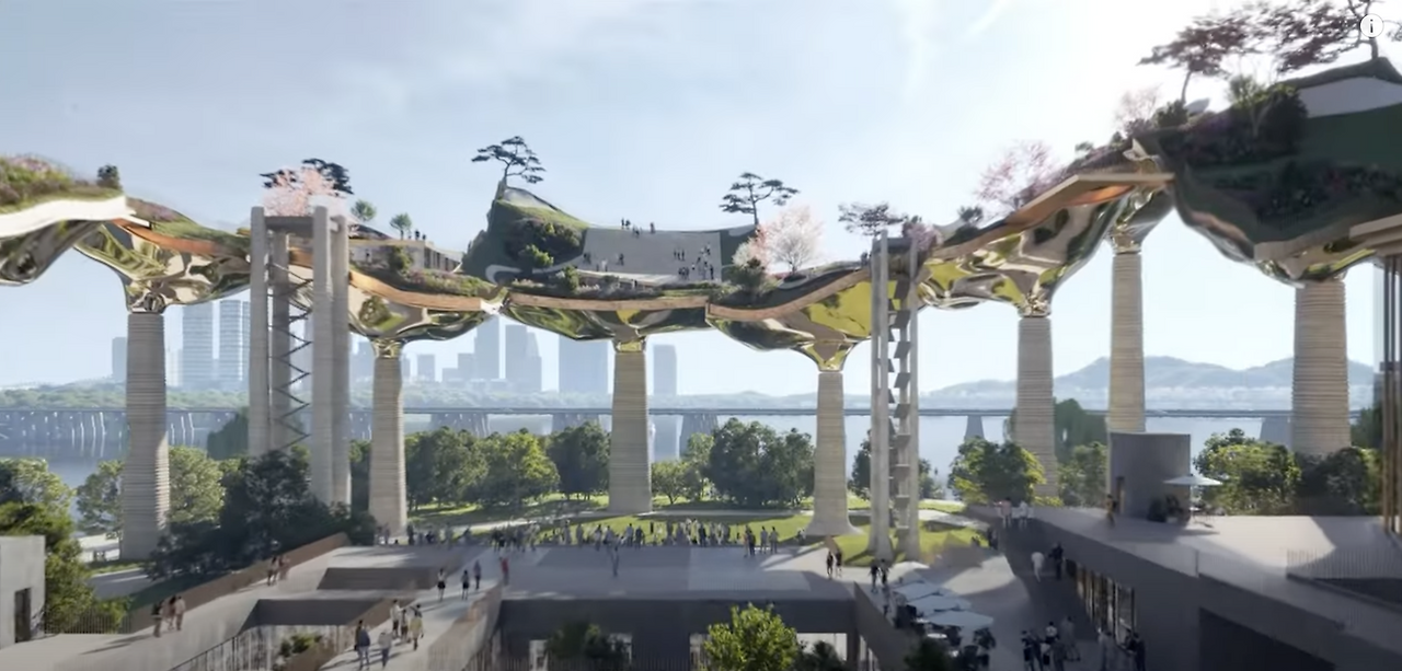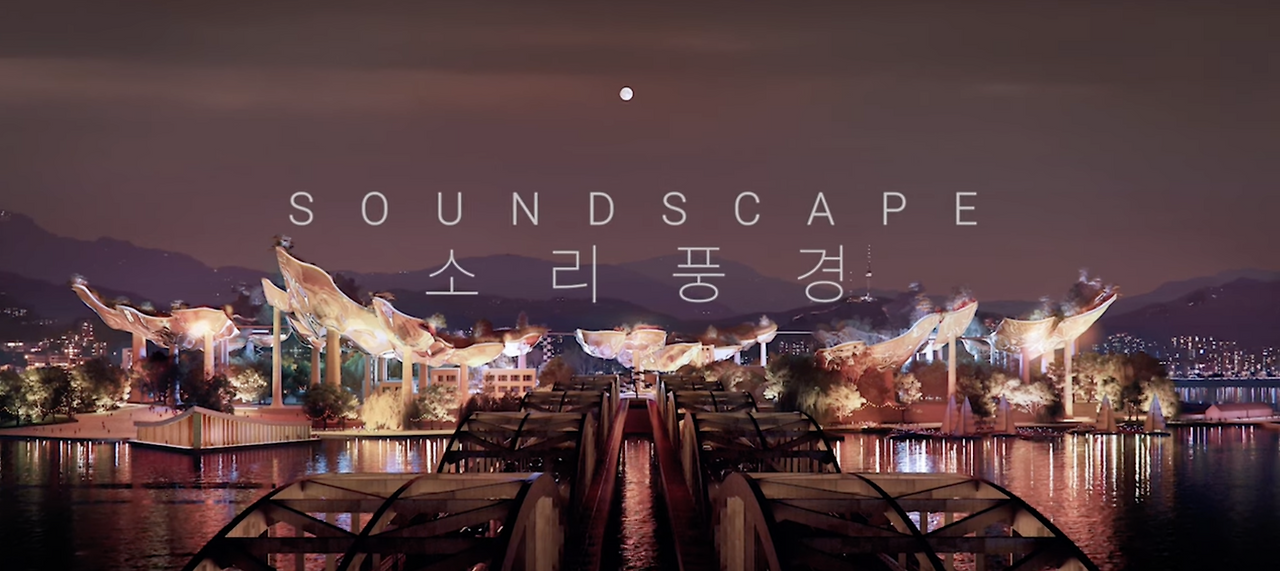 토마스 헤더윅의 노들섬 공모 선정작인 'SOUND SCAPE(소리풍경)’ 의 조감도입니다.