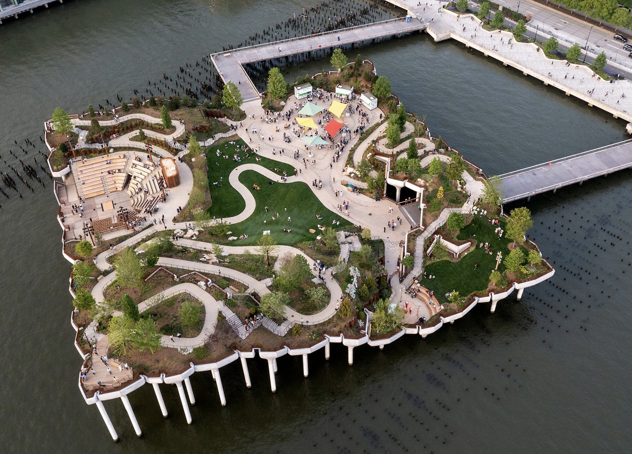 마지막 사례인 뉴욕의 인공섬 공원 '리틀 아일랜드(Little Island, 2013)'는 노들섬과 유사한 공간의 설계안으로 인공섬 위의 설계입니다.