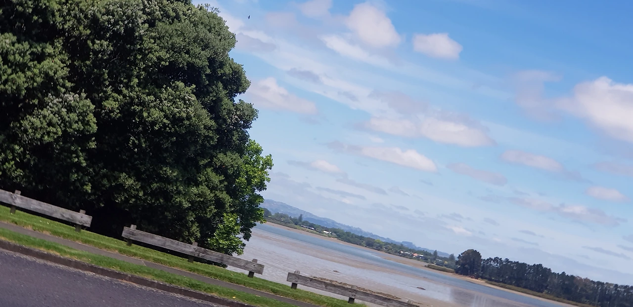도로 맞은 편 꽃 무리앞에