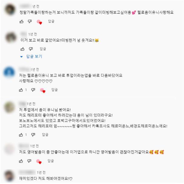 그중 초등학생 가족팀 영상의 반응이 상상 이상으로 좋았어요. 단순히 조회 수만 높았던 게 아니라 채널 구독자였던 또래 아이들이 댓글로 '재밌겠다', '나도 앱 다운받아서 해봐야지'와 같은 반응을 보여주면서 앱으로 유입되기 시작했거든요. 이렇게 아이들 사이에서 바이럴 되었고 그 영향으로 유저 또한 가파르게 증가했어요. 실제로 이 당시에는 아이들이 학교를 안 가는 주말만 되면 서비스 트래픽이 한꺼번에 엄청 몰리면서 서버가 다운되기도 했으니까요!