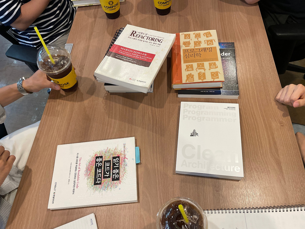 개발 내용을 다루는 도서를 선정해 리뷰 당일 자신이 원하는 파트를 읽은 후 이에 대한 소감을 공유