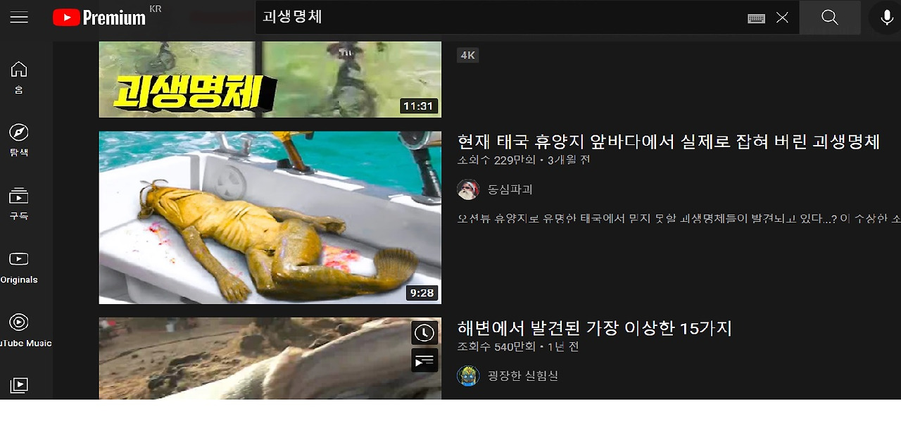 "엄마, 이것 봐요!! 근데 괴생명체가 바닷가에 발견이 됐대요! 유튜브에 나왔어요!"