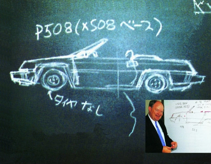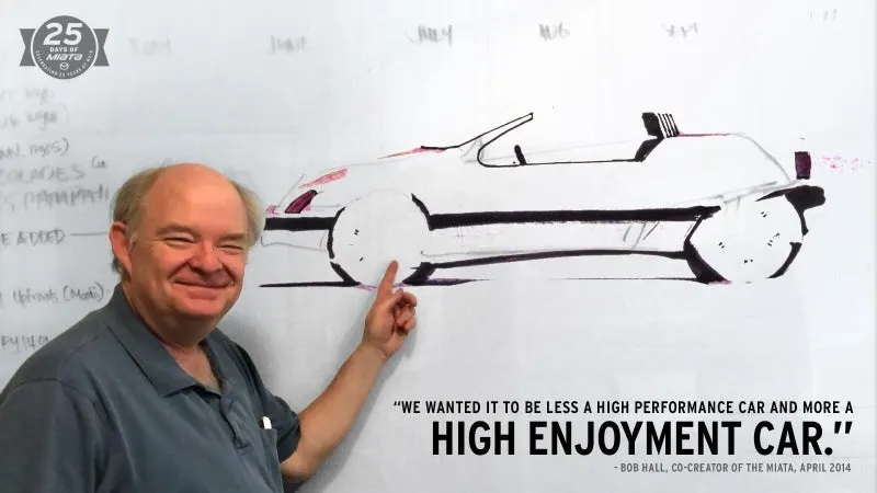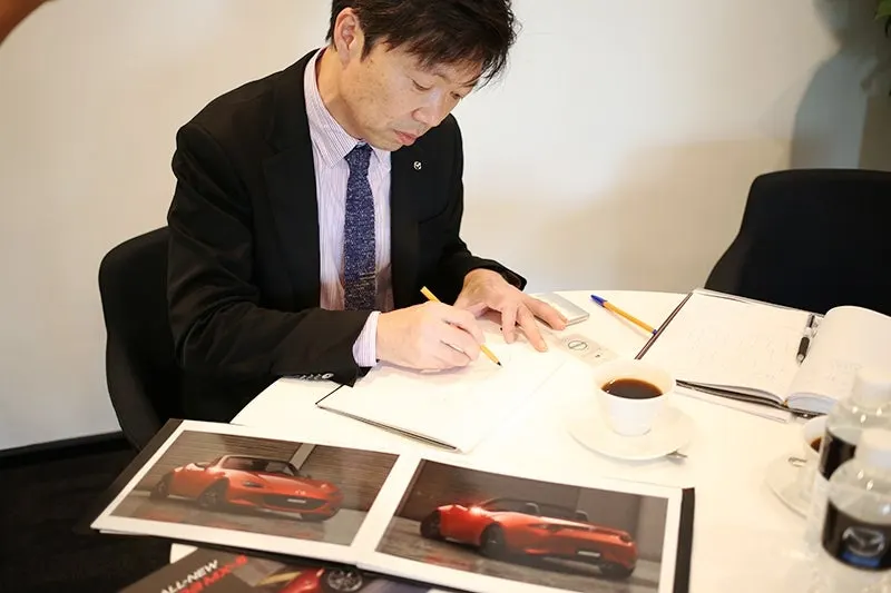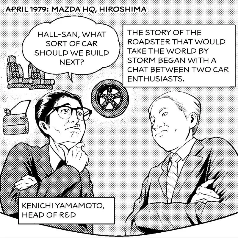 마쓰다의 연구 개발 책임자였던 야마모토 켄이치에게 칠판에 그림을 그리며 프런트 엔진, 후륜구동 방식을 가지고 있던 파밀리아의 부품을 사용하여 컨버터블을 만드는 것이 얼마나 쉬운 일인지 설명하였습니다.