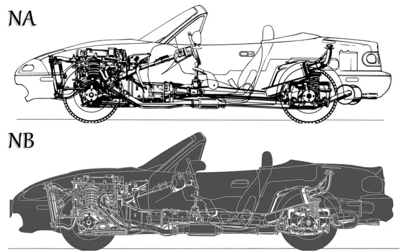 당시 NA와 NB 로드스터는 통일된 플랫폼이 아닌 각각의 전용 플랫폼으로 생산되고 있었습니다.