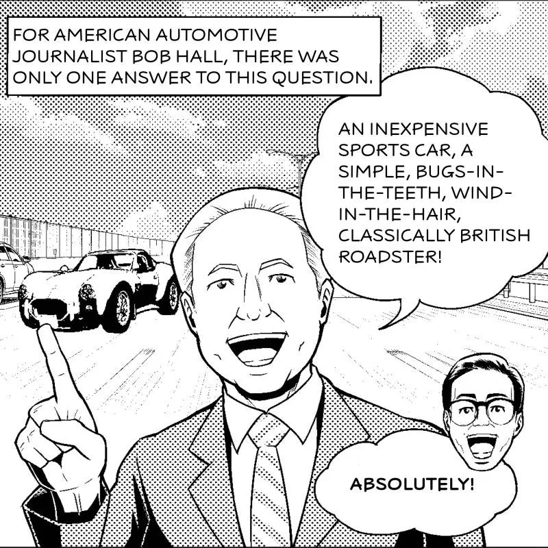 회의 후, 밥 홀은 야마모토 켄이치와 함께 저녁을 먹었지만 경량 스포츠카에 관한 대화는 언급되지 않았습니다. 하지만 그는 포기하지 않고 켄이치에게 트라이엄프 스핏파이어를 운전해 보라는 등 계속하여 그를 설득하였고