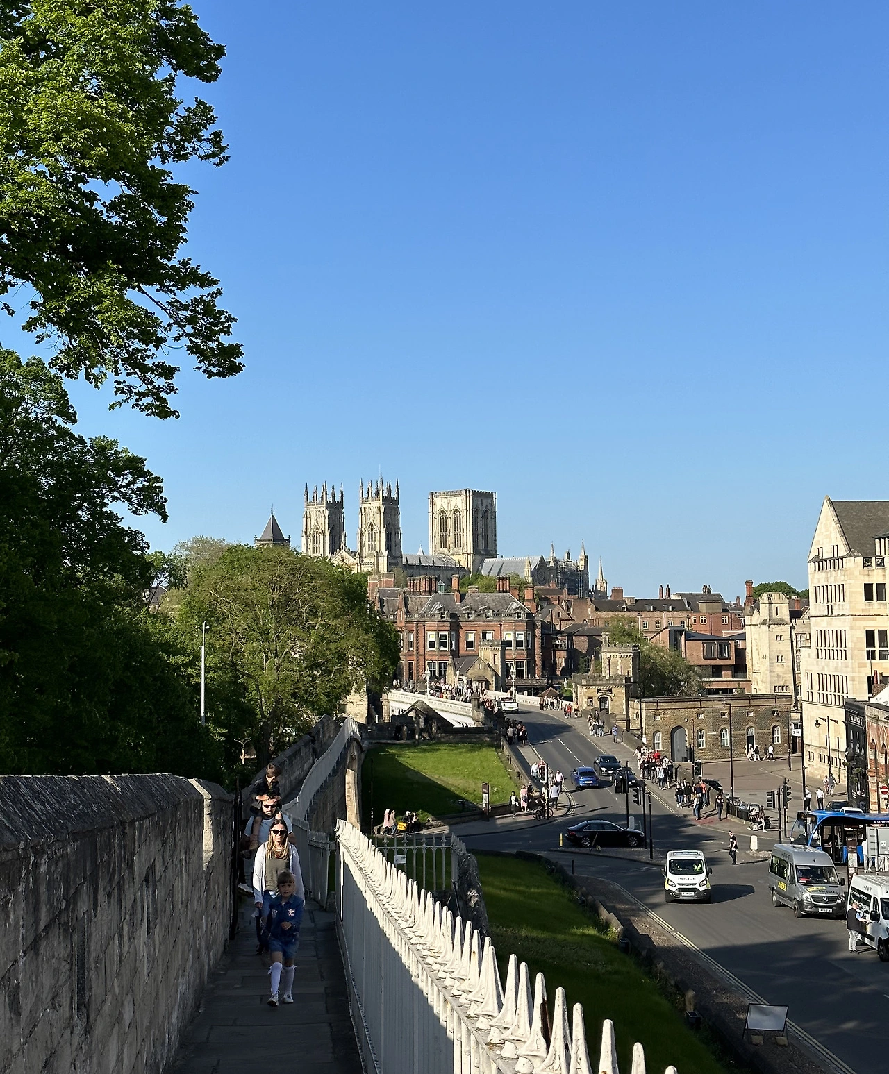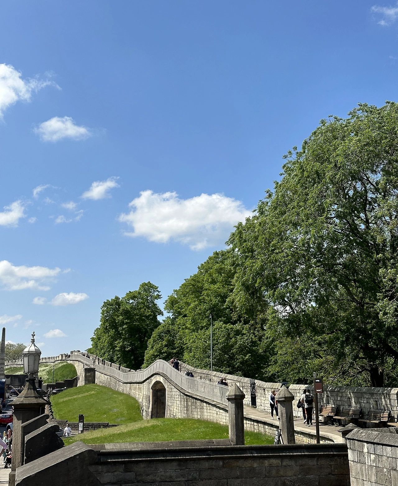 요크 시티 월즈는 중세 시대에 도시를 방어하기 위해 세워졌으며, 오늘날에는 요크라는 도시를 둘러볼 수 있는 공공 산책로로 사랑받고 있다. 요크 기차역에 도착하자마자 우리는 성벽을 따라 걷기로 했고, 역에서 나와 미크레이트 바(Micklegate Bar)로 향했다. 이곳이 요크 시티 월즈의 입구이자, 역사의 문이 열리는 시작점이다. 여기서부터 보스로우 레인(Bootham Bar)까지 성벽을 따라 걷다 보면 약 15분간 요크의 붉은 벽돌 건물들과 고풍스러운 지붕들이 펼쳐지며 중세의 분위기가 물씬 풍긴다. 수백 년 전 도시를 지키기 위해 세워진 성벽을 걸으며 과거를 그대로 보존한 아름다운 도시 풍경을 감상하는 것, 이것이 요크에서 가장 기억에 남는 순간이었다.
