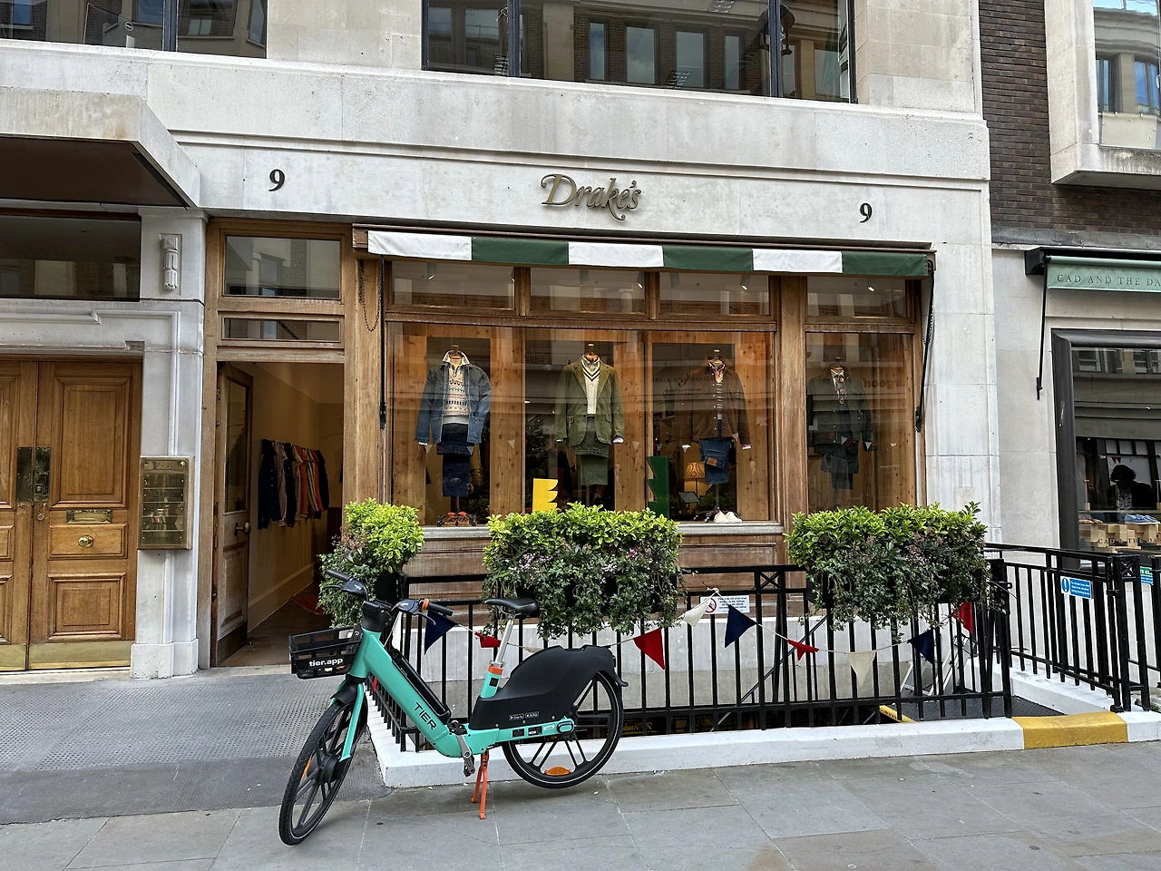드레이크는 영국의 대표적인 남성복 브랜드로, 고급 넥타이와 셔츠로 시작해 지금은 클래식한 남성 패션 전반을 아우른다. 클래식한 영국 스타일을 현대적으로 재해석한 브랜드로, 고급스러운 남성 패션을 선호하는 사람들에게 적합하다. 매장은 전 세계에 런던과 뉴욕, 그리고 서울까지 딱 3곳만 있다고 한다. 영국 클래식을 상징하는 브랜드인 만큼 런던에서 꼭 직접 봐야 하는 브랜드라고 생각한다.