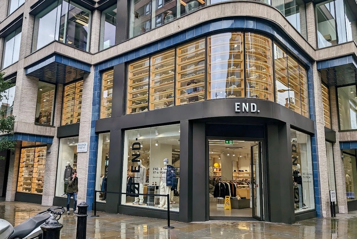 END. 는 영국에서 가장 유명한 편집샵 중 하나로, 런던, 뉴캐슬, 맨체스터에 매장이 있다. 또한, 외국인들에게는 온라인 패션 편집샵으로도 잘 알려져 있다. 런던 소호에 위치한 매장은 최신 스트릿 패션과 럭셔리 브랜드들이 공존하는 장소로, Nike, Fear of God, Comme des Garçons, Maison MIHARA YASUHIRO, Human Made 같은 동서양의 다양한 브랜드를 만날 수 있다. 특히 매장 외관을 가로지르는 거대한 유리 벽에는 다양한 스니커즈들이 전시되어 있어 시각적으로도 인상적이다.