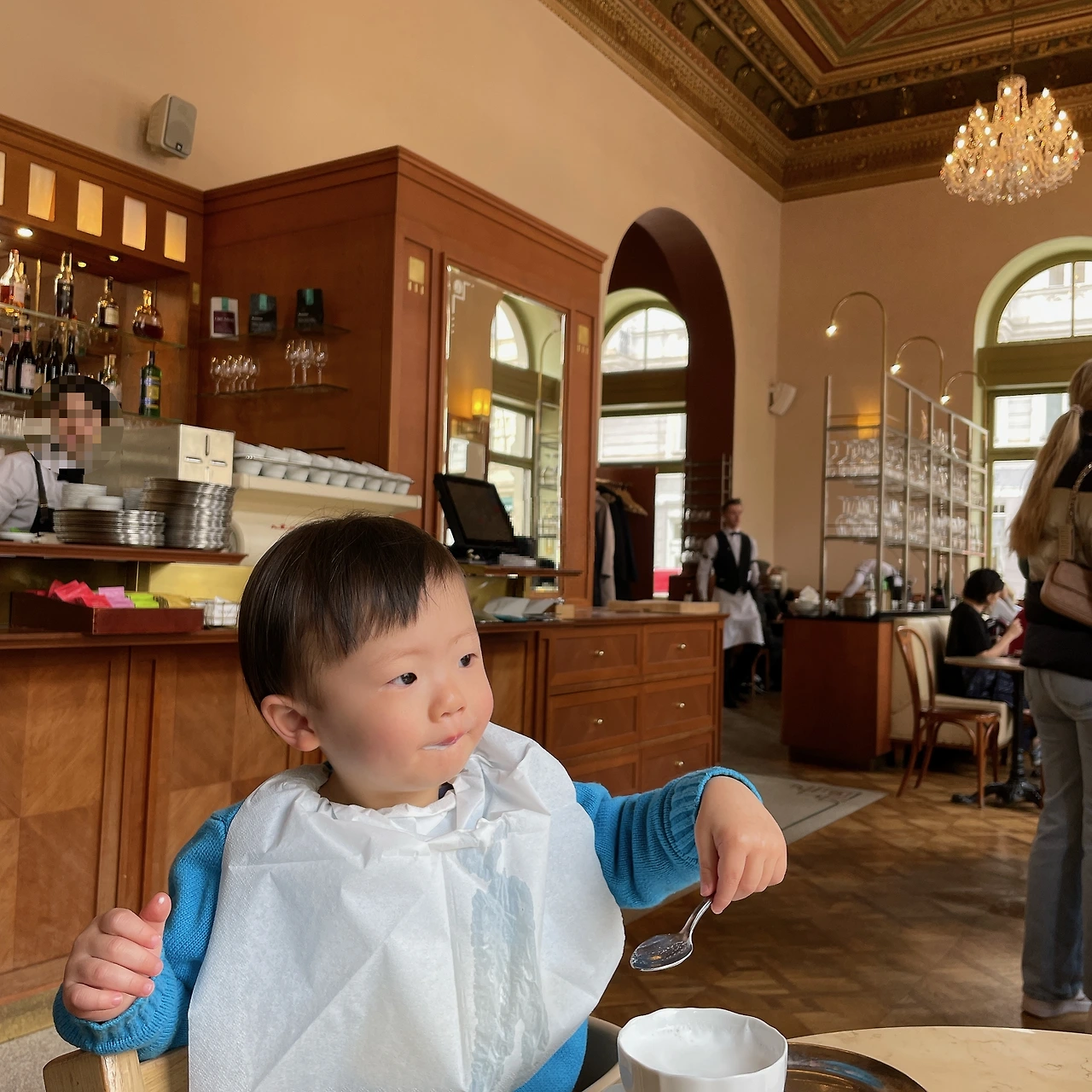 사실 노키즈존에 익숙한 나에게 만 2살 아들과 함께 카페데이트를 즐기는 건 언감생시 꿈도 못 꿀 일이었다. 갓 돌이 지난 아이를 데리고 시내를 방황하다가 마인강 전경이 보이는 테라스 좌석에 홀려 들어간 카페에서 점원이 먼저 나에게 "킨더카푸치노(어린이 카푸치노) 드릴까요?"라고 먼저 물어보기 전까지는.