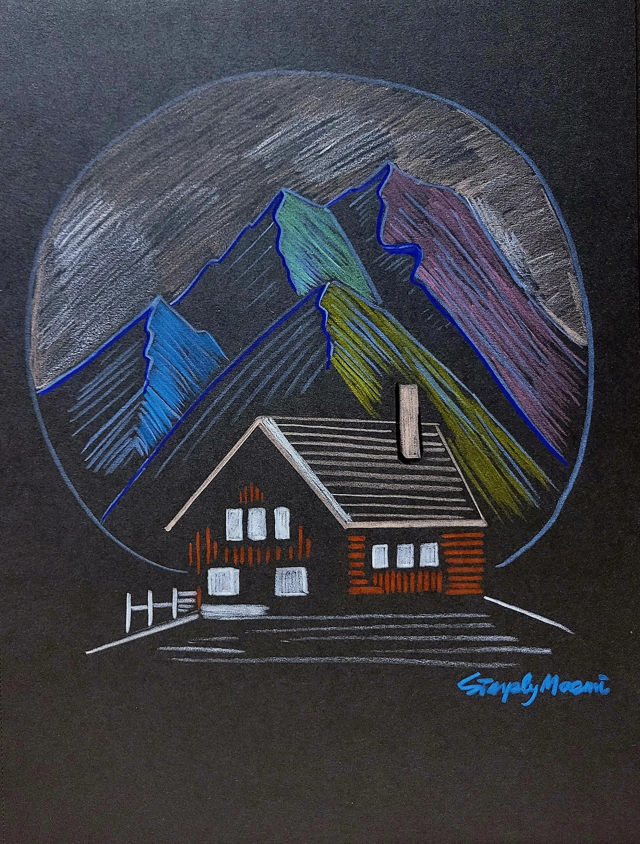 그림을 다 그리고 나니, 밤하늘 아래 조용한 집과 웅장한 산들이 마치 저와 작가님들을 나타낸 것 같다는 생각이 듭니다. 저의 작은 집을 따스하게 안아주시는 웅장한 산 같은 작가님들 감사합니다. 격려를 아끼지 않고 늘 응원하여 주셔서 감사합니다.
