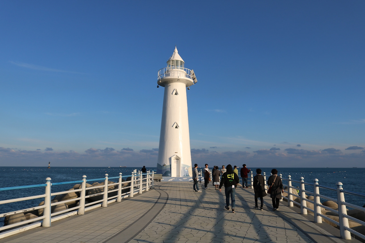 도시에선 보기 힘든 풍경이다. 흰 등대 쪽에 관광객이 훨씬 많기에 가까이 가서 사진을 찍었다. 뒤에 펼쳐진 하늘과 먼 바다 위의 구름이 "마치 그림 같아!"라는 상투적 표현을 매우 자연스럽게 만들기까지 한다.