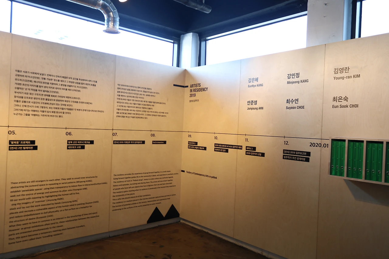 작품에 대한 사진은 남기지 못했지만 2층에 들어서자마자 레지던시 작가에 대한 소개가 있어 카메라에 담았다.