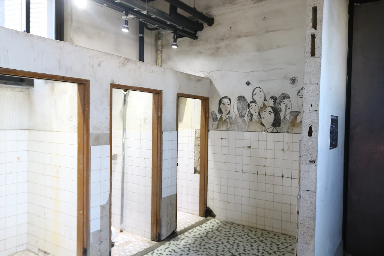 특히 2층에는 문이 없는 화장실이 인상적이었다. 당시에는 사용했겠지만 물론 지금은 사용할 수 있는 화장실이 아니다. 순간 제주시의 아라리오 뮤지엄을 다시 찾은 느낌도 들었다. 화장실 변기마다 카세트 테이프가 버려진 상태로 있었다. 뭐라 딱 정의하기는 어려워도 이런 공간을 만든 이유가 마음으로 읽혔다. 카세트 테이프 산업이 막을 내리자 이 화장실의 역사도 막을 내렸다.