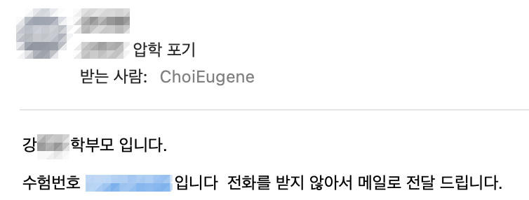 "강○○, 이탈한 학생 둘 중 하나인가요? 갑자기 입학 포기하겠다고 제 이메일로 연락이 왔네요." 내가 상황을 공유하자, 부처장님이 확인해 보겠노라고 했다. 본관에 도착할 즈음, 전화가 왔다. 강○○은 원래 포기한다고 한 학생이 맞고, 나머지 한 명이 등록해서, 지금 현재 이탈자는 한 명뿐이라고.