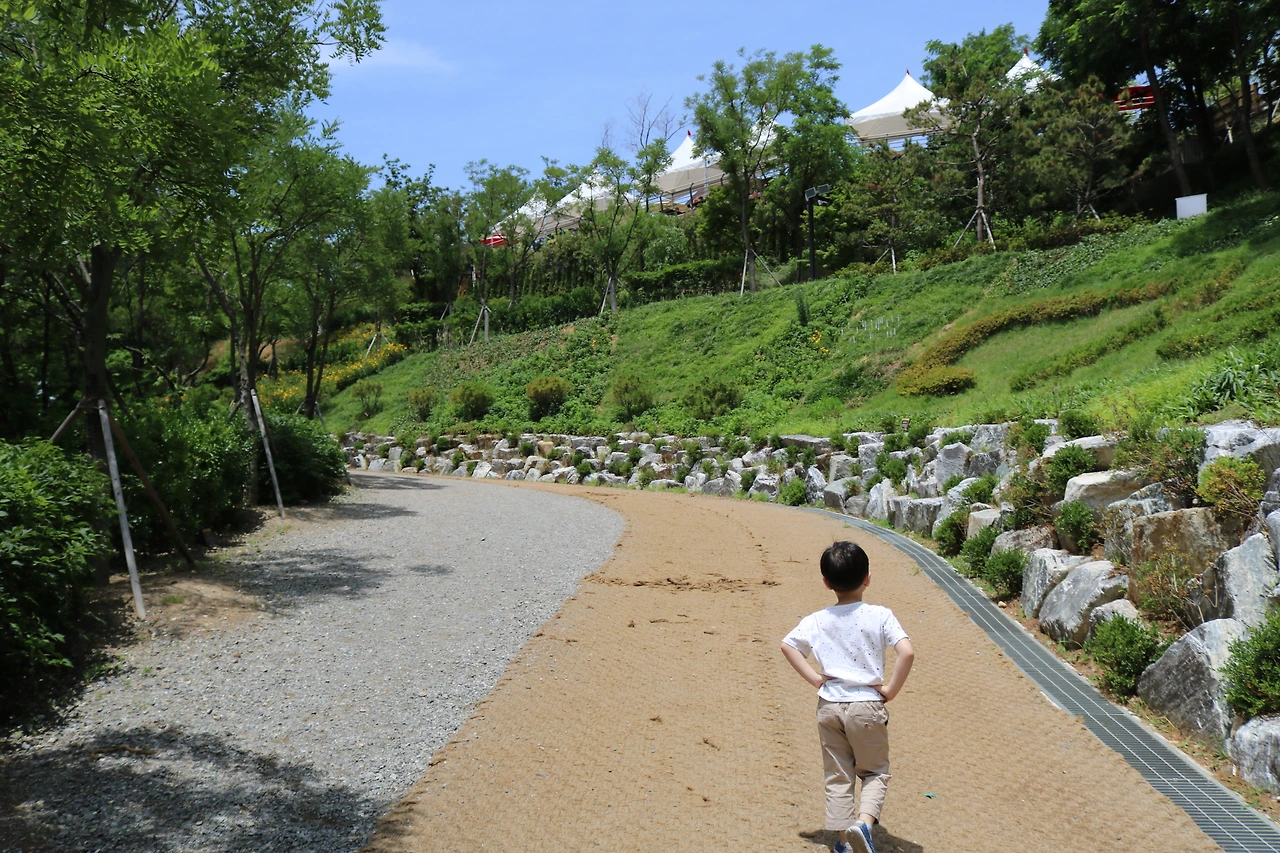 주차를 한 후 조금 걸으면 광명동굴로 가는 길을 안내하고 있는 표지판을 볼 수 있다. 광명동굴은 가학산에 위치하고 있으므로 조금 걸어 올라야 한다. 걸어 올라가는 길을 '정다운 길'로 네이밍을 했는데 사랑하는 사람의 손을 꼭 잡고 걸어 올라갈만한 정말 아름다운 길이었다. 도착하자마다 뛰지만 않으면 아이들도 천천히 부모의 도움 없이 걸어 올라갈 수 있다. 자연을 따라 걷는 길이다.