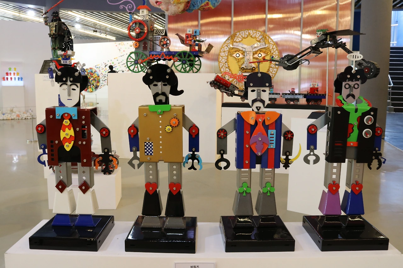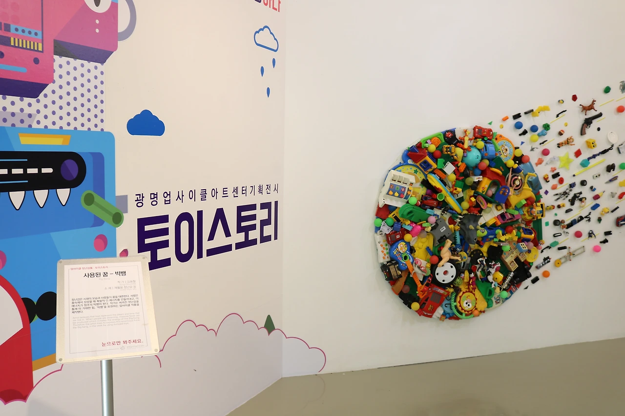 내가 광명업사이클아트센터를 방문했을 때에는 토이스토리 기획전시가 진행되고 있었다. 버려진 장난감이나 플라스틱에 새 생명을 불어넣어 재탄생시켰다. 사람이 조물주가 되는 순간 아닐까.