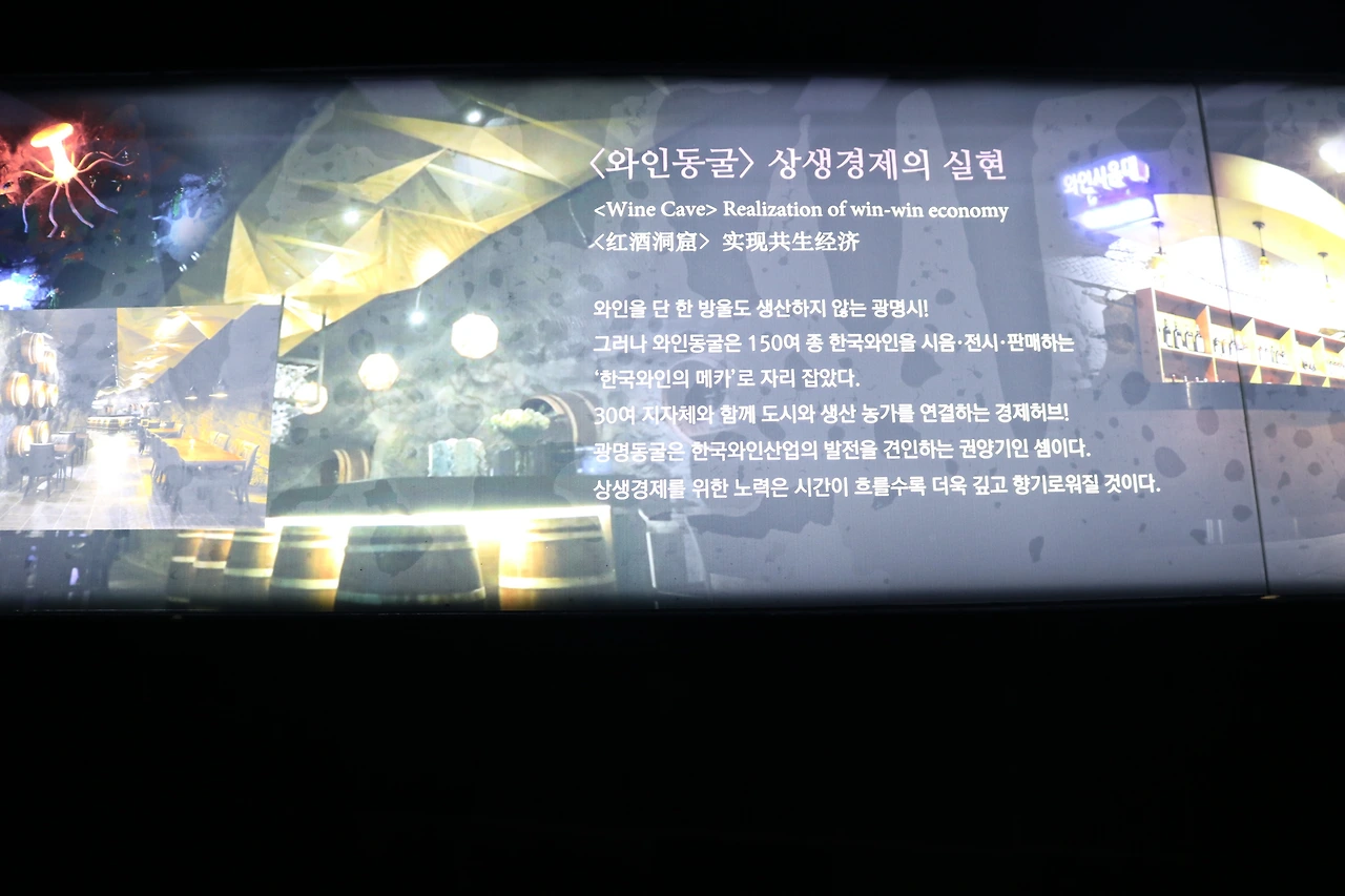 광명동글 내부의 시그니쳐는 '와인동굴'인 것 같다. 한국의 와인 시장에서 광명동굴의 와인을 빼놓고는 설명이 되지 않는다고 한다. 물론 와인동굴에서 와인이 생산되는 것은 아니다. 대신에 한국의 거의 모든 와인을 시음할 수 있고 구매할 수 있는 곳이다. 이 장소는 드라마에 많이 등장한다. 컴컴한 분위기의 동굴 속에서 와인을 마시면 무조건 광명동굴이다.