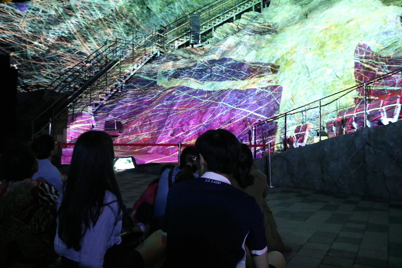동굴 안에는 우리의 마음을 설레게 하는 것이 상당히 많다. 그중 가장 먼저 만나볼 수 있는 것 중 하나가 '동굴 예술의 전당'이다. 사진을 자세하게 보면 사진 왼쪽에 채광을 위해 광부들이 오르내렸을 계단이 여전히 보존되어 있는 것을 알 수 있다. 내가 광명동굴을 만나러 간 시간에는 특별한 공연이 없어 아쉬웠다. 공연시간을 확인해보고 방문하면 좋을 것 같다. 하지만 환상적인 레이저쇼가 '동굴 예술의 전당'의 무대 위로 펼쳐져 잠시 쉬어갈 수 있는 마음의 여유를 허락하고 있었다.