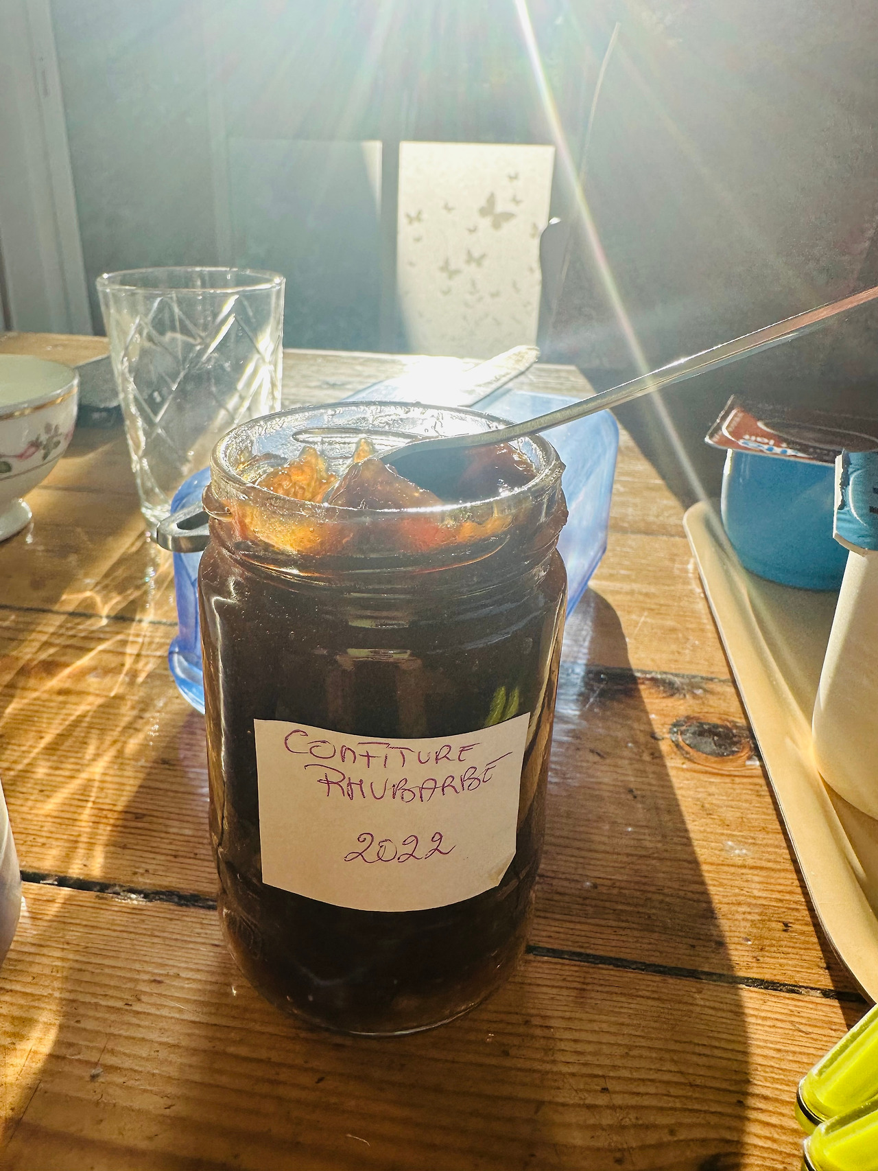 ‘Confiture Rhubarbe 2022’ 라벨이 붙은 대황 잼 병에 파스칼이 직접 쓴 글씨가 적혀 있다. 어제 정원에서 스치듯 지나친 대황 줄기로 만든 잼이다. 껍질을 벗겨 만드는 대황 잼은 부드럽고 가벼운 산미가 있어 산뜻한 맛이 났다.