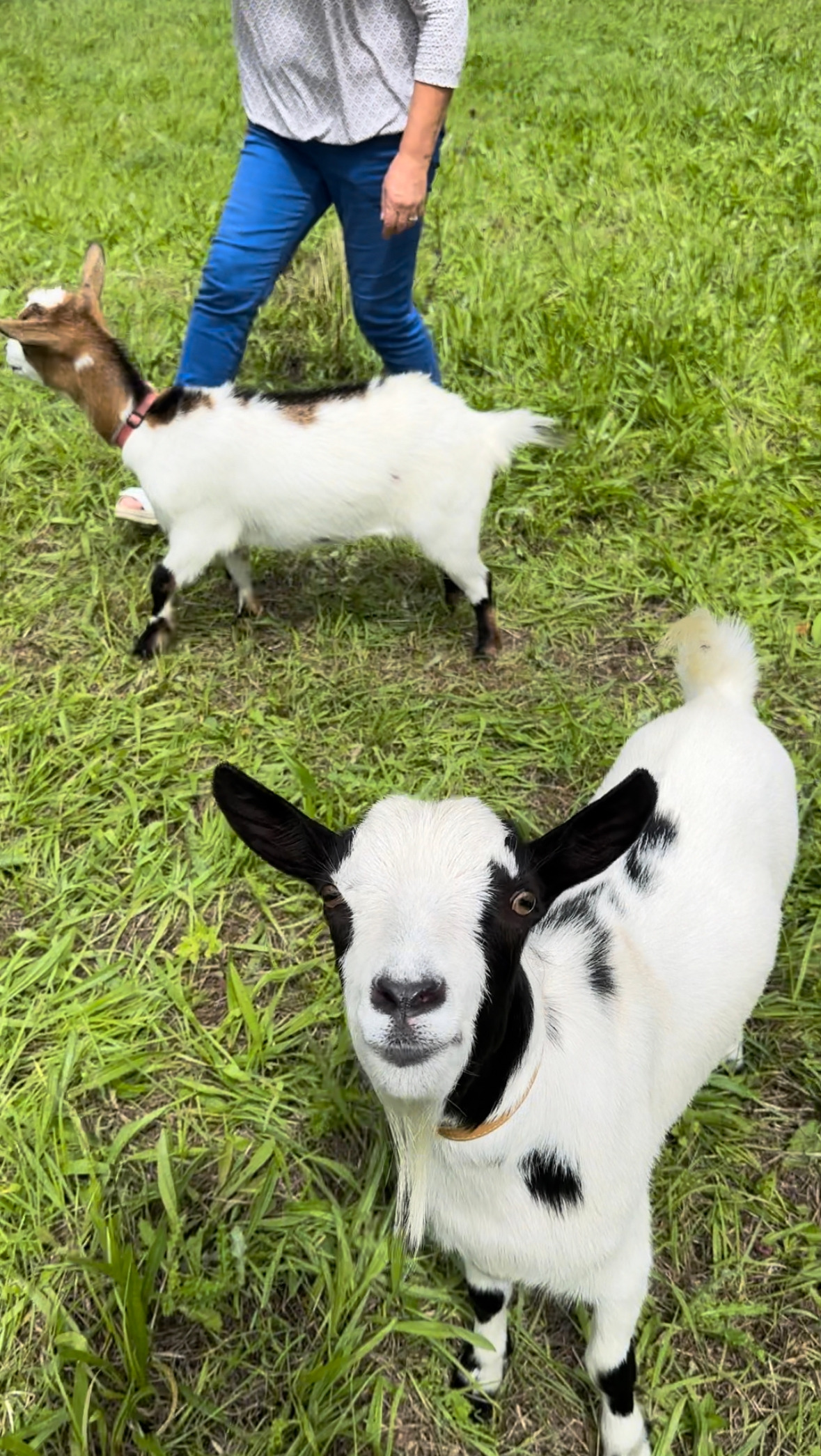 파스칼이 두 녀석을 너른 농장 풀밭으로 데리고 나오자, 싸미가 다가와 다리에 머리를 비볐다. 살짝 무서웠지만 다행히 금방 적응이 됐다. ‘머리로 받으면 어쩐다?’ 싶었는데…친하게 지내자는 뜻으로 알고 한번 쓰다듬으니 두려움은 금세 가셨다. 문득 그런 생각이 든다. 사실 덩치로 보면 사람이 훨씬 큰데, 무서우면 동물들이 더 무섭지, 사람보다 덜 무섭지는 않을 것 같다. 그렇게 생각하면 용기 내준 동물들이 고마웠다. 스쿠비 두도 경계를 풀고는, 이내 호기심에 다가왔다.