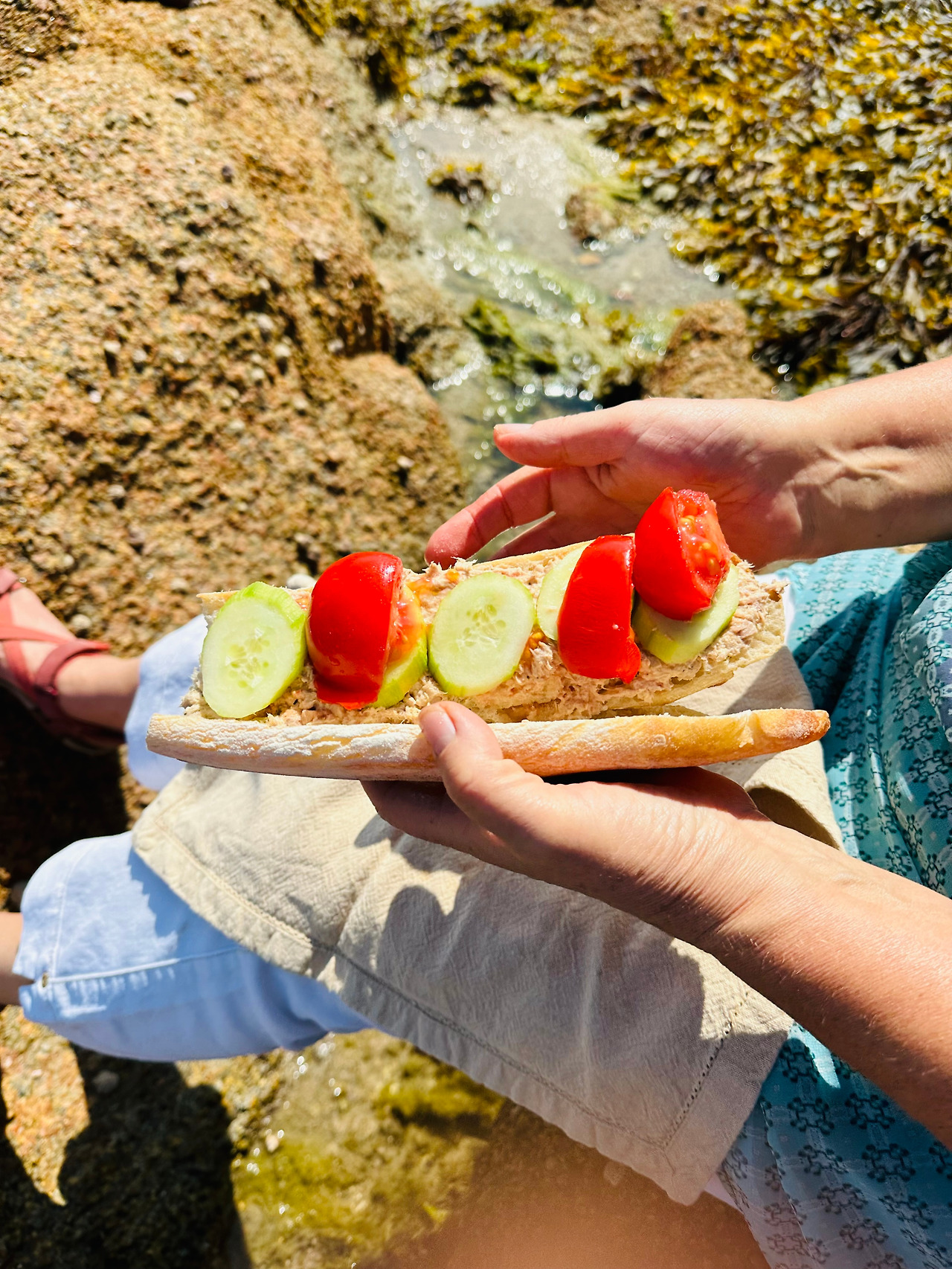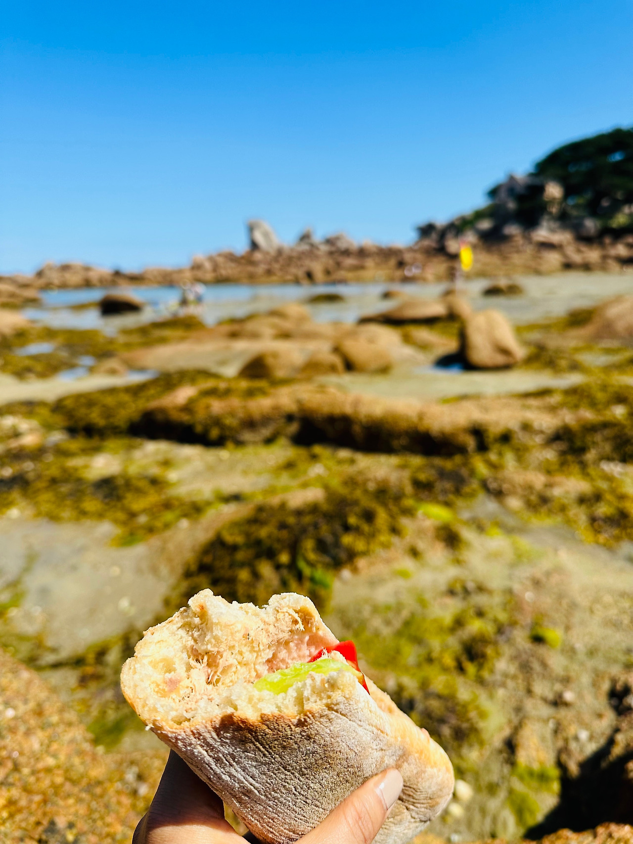 파스칼은 만물 상자 같은 큰 배낭에서 바게트와 참치 섞은 소스, 썰어 온 채소 조각, 사과와 살구, 차와 컵 등을 꺼냈다. 나는 고저 차 있는 바위에 궁둥이를 붙이고 앉아 다리를 쭉 뻗고, 허벅지 식탁 위에 냅킨을 펼쳤다. 테이블 삼은 다리 위로 바게트를 올린 후, 반으로 갈라 먼저 버터를 발랐다. 그 위에 눅진한 참치 소스를 얹고, 정원에서 따온 토마토와 오이 조각을 다시 그 위에 올렸다. 그러곤 바게트를 덮어 한입 베어 물었다. 한입 넘기니 그리 시장하지 않다고 기별했던 ‘위’마저도, ‘꿀맛은 멀리 있지 않아’라는 정정 답신을 보내왔다.