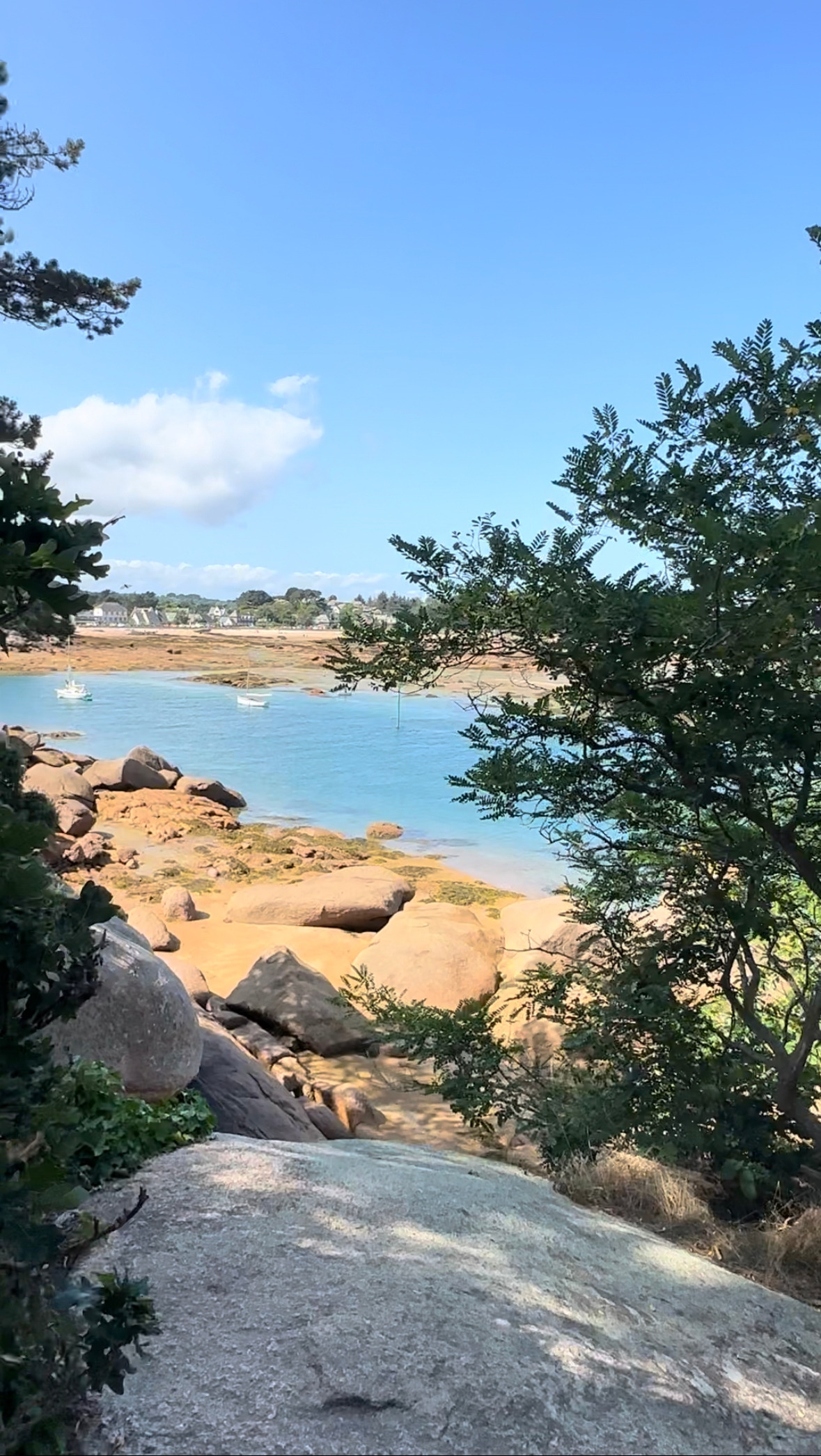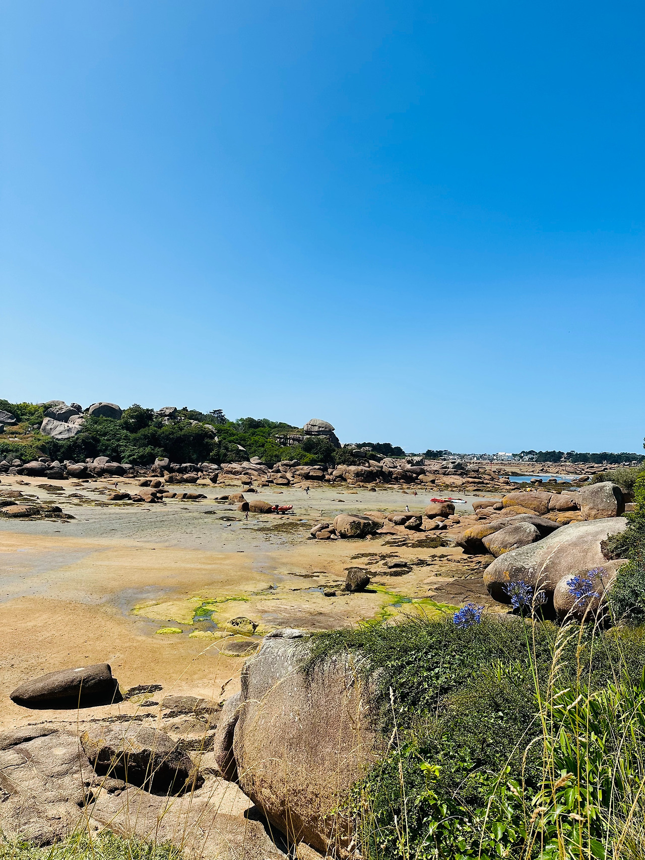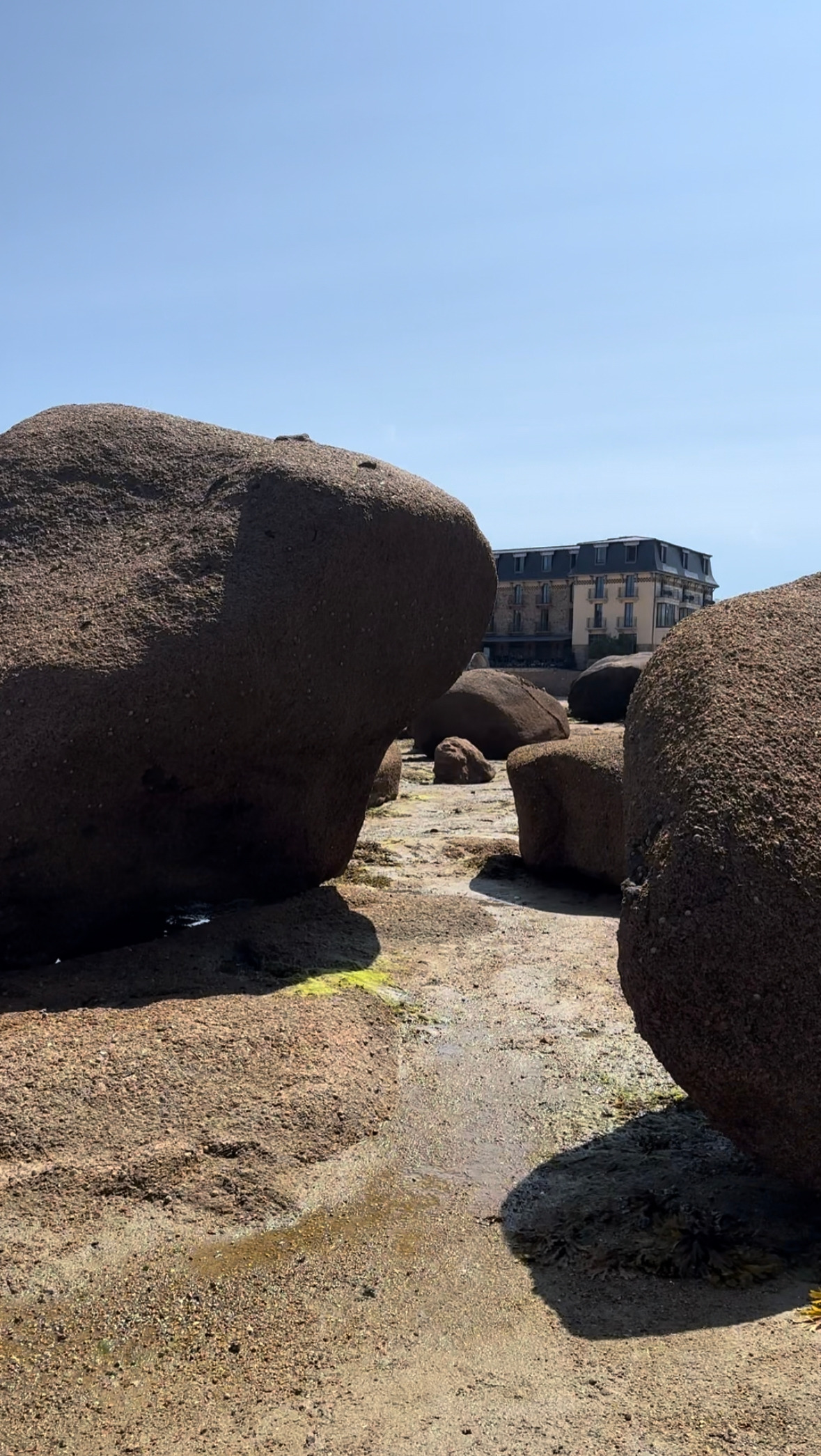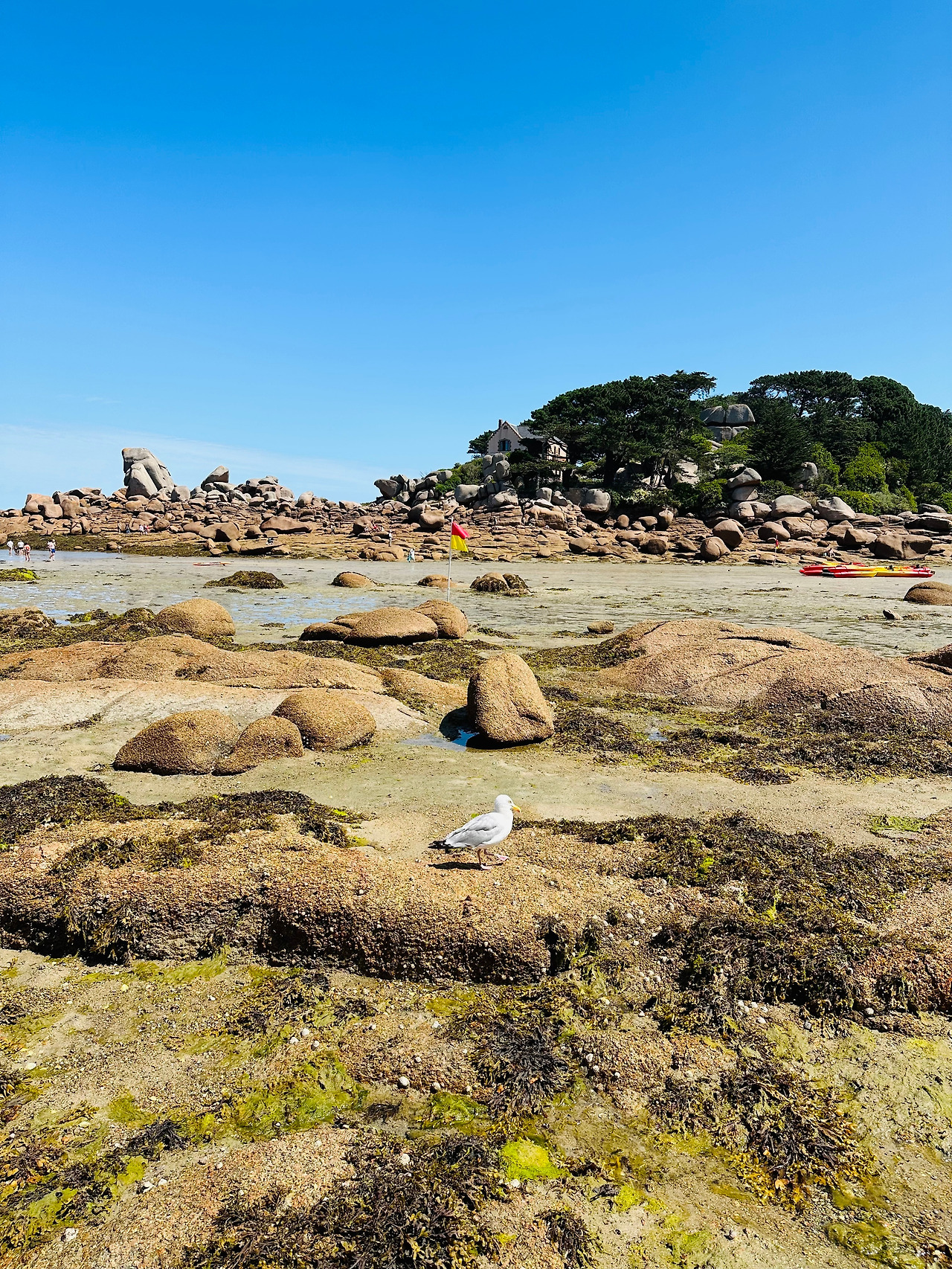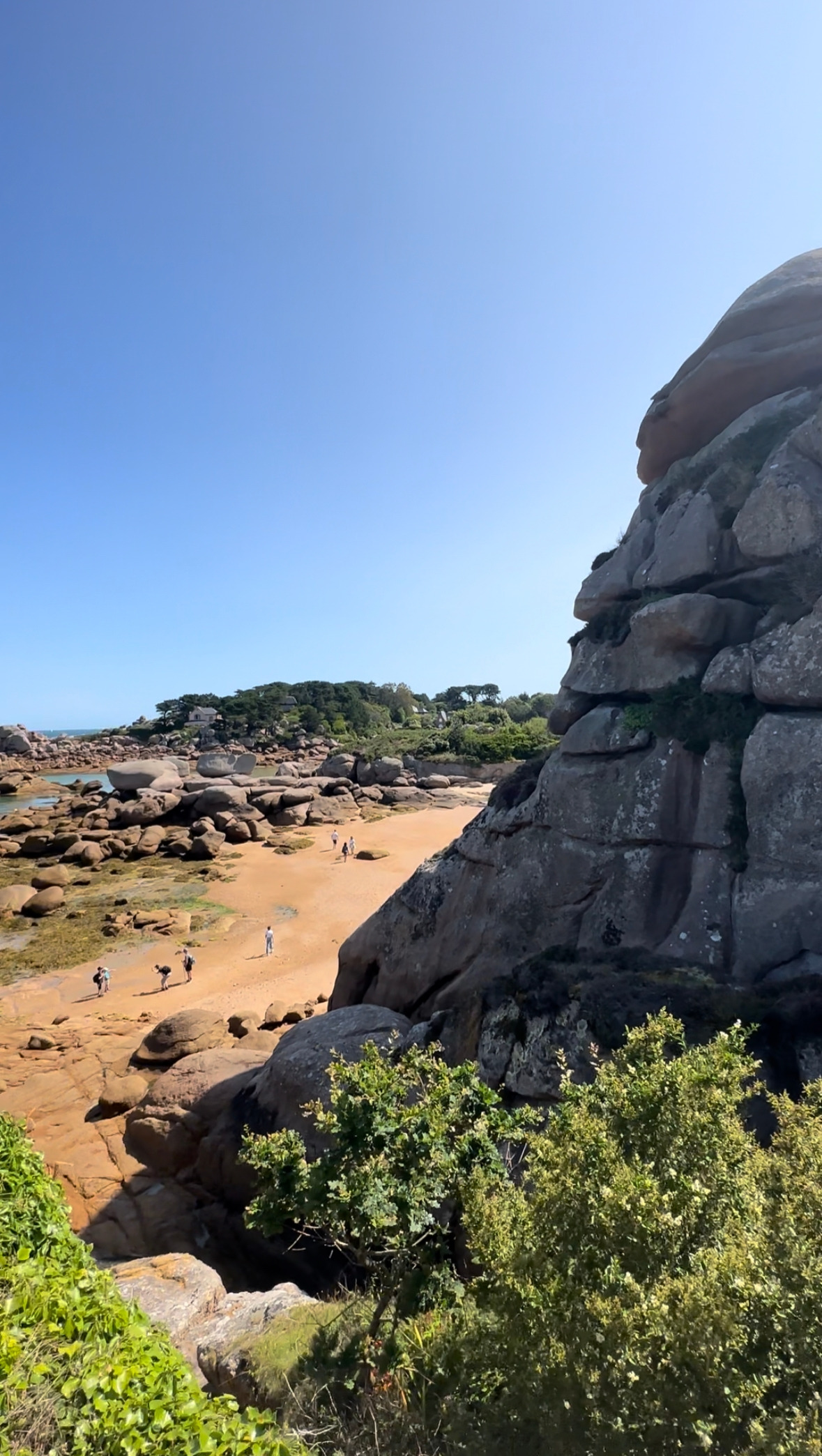 페로-기렉(Perros-Guirec)은 지역 이름인 ‘페로’와 성인 ‘기렉’의 이름을 합쳐 만든 해변 마을로, 껑땅에서 차로 약 75km 떨어져 있다. 19세기 말부터 해변 휴양지로 알려지기 시작한 이곳은 '장밋빛 화강암 해안(Côte de Granit Rose)'에 위치해 아름다운 해안선으로 유명하다. 분홍빛 해안을 이룬 화강암 바위들이 자연이 깎아낸 조각품처럼 해변을 따라 늘어서 있다. 이 바위들은 해가 질 무렵이면 장밋빛으로 더욱 물들었다.