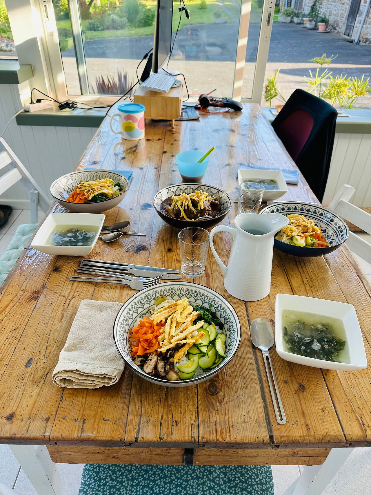 미역을 먹지 않는 프랑스인 파스칼에게 미역국 맛을 보여주고 싶어서, 가져온 블록 미역국도 함께 상에 올렸다. 큰 상차림은 아니었지만 오색의 비빔밥과 안심 불고기가 맛깔스럽게 보여 다행이었다. 무엇보다 밥이 타지도 설익지도 않아서 안심이었다. 파스칼은 배가 들어간 불고기 양념이 궁금했는지 자작해진 소스부터 맛을 보았다. 곧 ‘음—’ 소리와 함께 ‘맛있어’를 몇 번이나 말했다. 파스칼의 행복한 표정에 나도 덩달아 흡족해졌다.