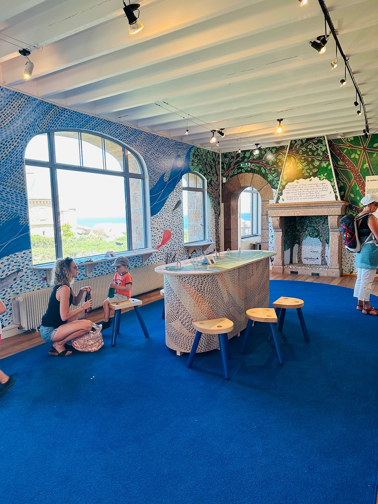 파란색 카펫과 흰 천장이 바다를 표현하고 있는 박물관은 큰 아치형 창문을 달고 아이들에게 너른 볕을 쐬어주었다. 탁 트인 브르타뉴 바다가 보이는 박물관에서 아이들은 바다와 자연을 배우며, 얼굴에 일상의 평온이 묻어 있었다. 나는 창 앞에 서서, 마치 평화로운 곳을 찾아 떠나온 바다표범처럼 바다를 바라보았다. 순간, 내 시간도 멈춘 듯 마음이 고요했다.