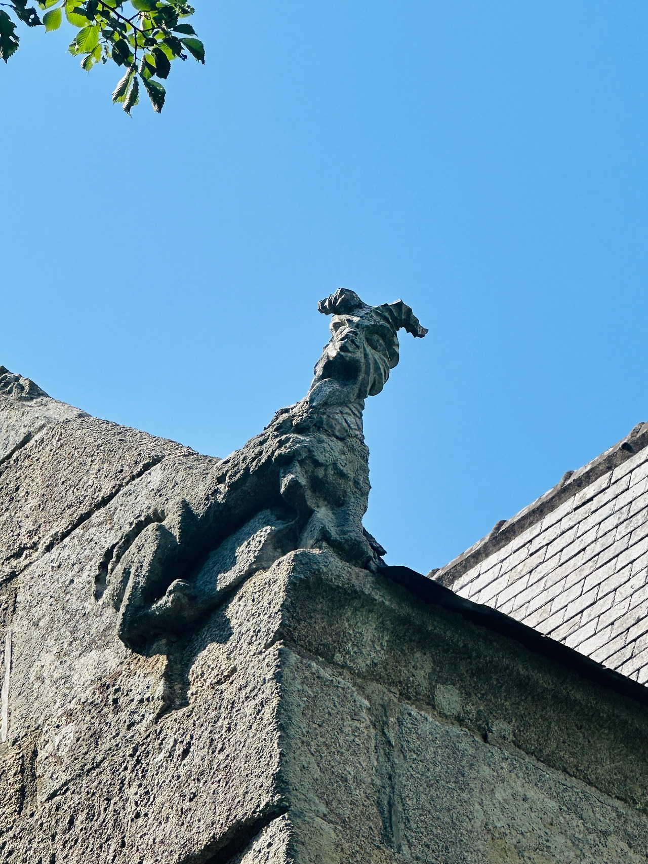 ‘리와논(N78, Saint Riwanon)’ 성인은 이 많은 멋진 석상 중에서도 특히 내 마음을 사로잡았다. 멀리서부터 가까이 다가갈수록 시선은 점점 그녀에게로 모아졌다. 이음새 없이 단정한 긴 원피스를 입은 그녀는 머리카락을 한쪽으로 가지런히 넘긴 채 저 먼 곳 어딘가를 응시하고 서 있었다. 한 손은 무릎 위에 다른 한 손은 바람에 날리는 풍성한 머리카락을 고정하듯 붙잡고 있다.
