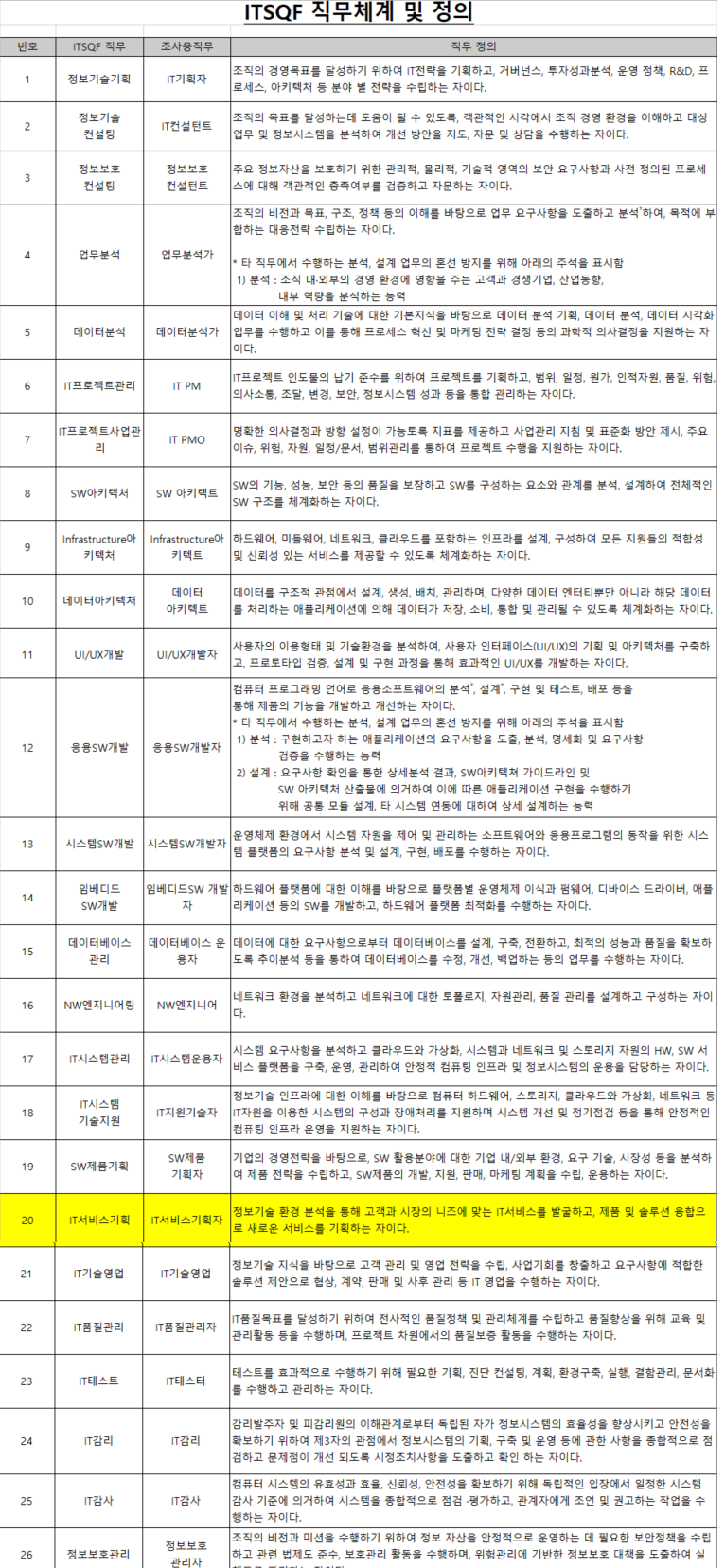 ITSQF 자료를 보시면 정보기술기획, 정보기술컨설팅 직무에서
