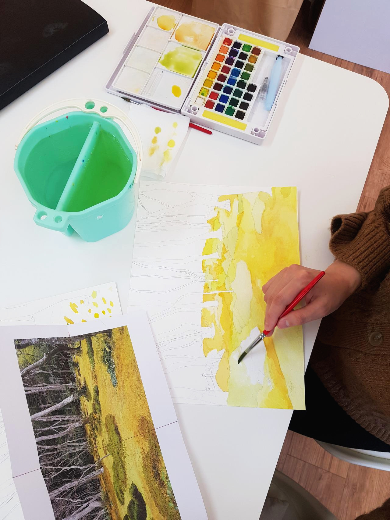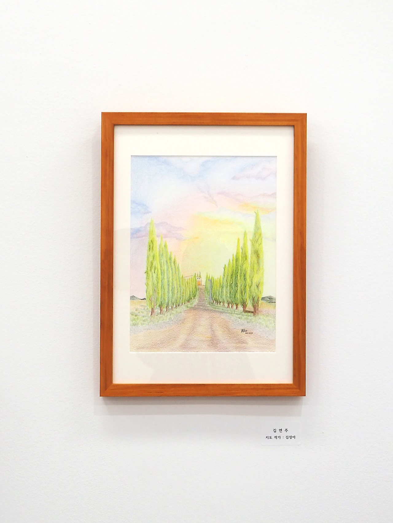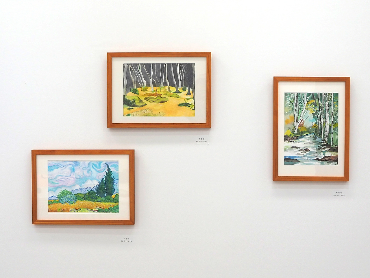 수강생 분들은 수업의 중반부터는 각자의 강점을 스스로 발견하기 시작했다. 어떤 분은 동양화 전공의 느낌을 살린 수채와 풍경화를 그리고 어떤 분은 자신의 추억이 담긴 이야기를 담아 색연필화를 그렸다. 또 어떤 분은 약간의 떨리는 손으로 자연스럽게 멋있는 어반 스케치 시리즈를 완성했고, 또 어떤 분은 오일파스텔을 이용해 에너지가 넘치는 색과 표현을 그림 속에 담아냈다. 나는 최대한 스스로의 내재된 흐름을 거스르지 않는 방향으로 그림을 그리도록 유도했다. 그리고 자신이 가진 장점을 잃고 단순히 모사하는 것에만 집중하지 않도록 지속적으로 격려하고 칭찬을 아끼지 않았다. 전시가 시작되는 한 주 전에는 작업실을 개방하고 원하는 누구든 와서 자신의 작업을 다듬고 완성할 수 있도록 배려했다. 미술 비전공자로서 나의 첫 전시가 떠올랐기 때문이다. 생각해보면 함께 수업했던 5명의 수강생은 나에게 단순히 수강생을 넘어선 예비작가로서의 의미가 함께했다. 이들이 예술가가 되지 않는다 해도 이러한 경험을 토대로 예술과 예술인을 이해할 수 있는 기회가 되고 내가 살고 있는 지역사회가 예술 친화적인 곳이 된다면 그것으로도 공공미술의 한 가지 의미가 되지 않을까 하고 생각했다.