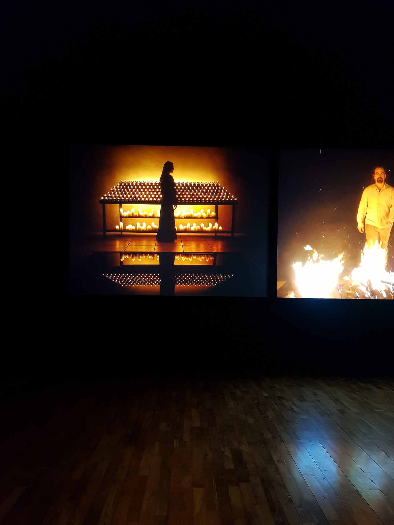세 번째 전시실의 이노센츠(2007)를 보자마자 나는 아담과 이브가 떠올랐다. 아담과 이브를 떠올려서 일까? 작품의 제목이 내포하는 의미처럼 그들은 자신의 결백을 주장하며 서서히 나를 향해 다가오는 느낌을 받는다. 그러나 먼 거리와 노이즈가 가득 낀 흐린 화면만큼이나 그들의 결백을 믿기는 어려운 듯한 느낌이다. 나는 그들의 눈동자와 입술의 떨림 그리고 숨결을 느낄 수 있도록 더 바짝 가까이 다가오길 바라며 화면을 응시한다. 그들은 점점 가까워지고 마침내 빛을 뿜으며 선명한 있는 그대로의 모습을 보여준다. 그 모습을 지켜보며 나 또한 그들이 외치던 결백과는 거리가 먼 인간임을 깨닫고 그들과 나, 우리 서로 다르지 않은 존재임을 알게 된다. 그러는 도중 그들은 다시 걸음을 돌려 무색의 흐린 세상 속으로 걸어 들어간다. 그들이 선명했던 그 잠깐의 순간은 마치 인생을 살며 깨달음을 얻었다고 생각하는 찰나의 순간과도 같다. 우리는 무수한 깨달음을 얻지만 그것은 찰나이다. 우리가 그 많은 깨달음을 모두 몸과 마음에 기록하고 지속한다면, 신이 아닌 인간이 있을까.