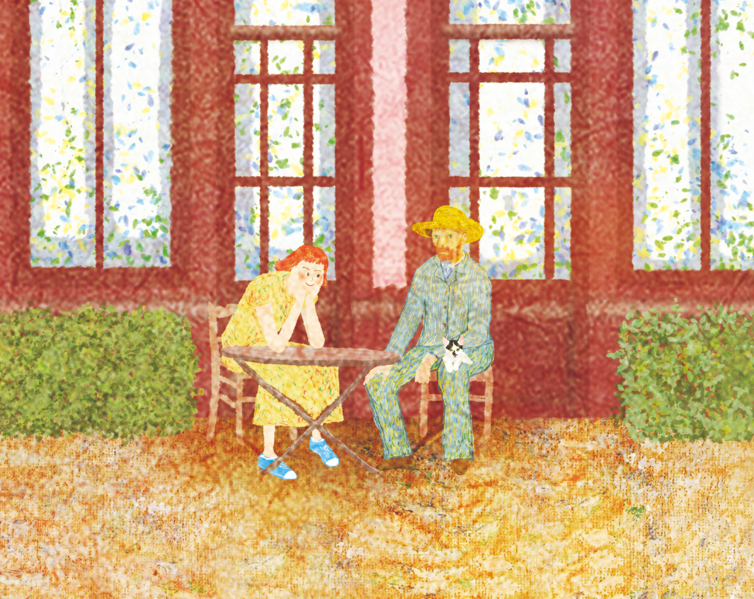 이 장면에서 빈센트와 소녀와 고양이는 이제 더 가까워졌습니다. 빈센트가 사이프러스 나무를 그리며 느꼈던 감상을 떠올리며 좀 더 오래 그에게 머물러 보려고 합니다. 다만 자연뿐은 아니겠지요. 인물이나 사물을 그릴 때도 시선 속에 오래 머물수록 그 깊은 내면까지 표현할 수 있는 힘이 생깁니다. 차갑고 냉정한 표정의 고흐가 내면에 지었던 회복과 위로의 표정을 표현할 수 있을 때가 곧 올 것 같아요.