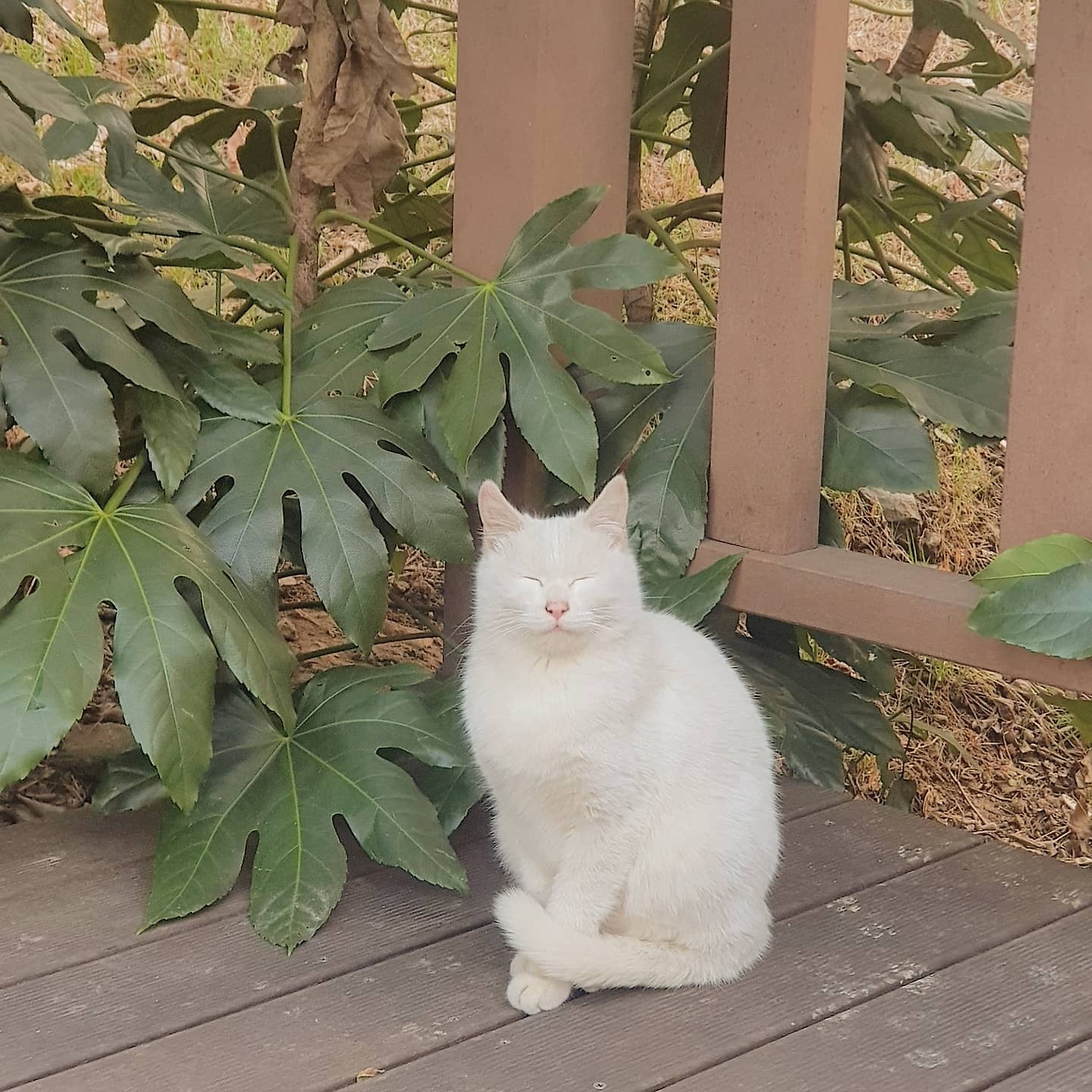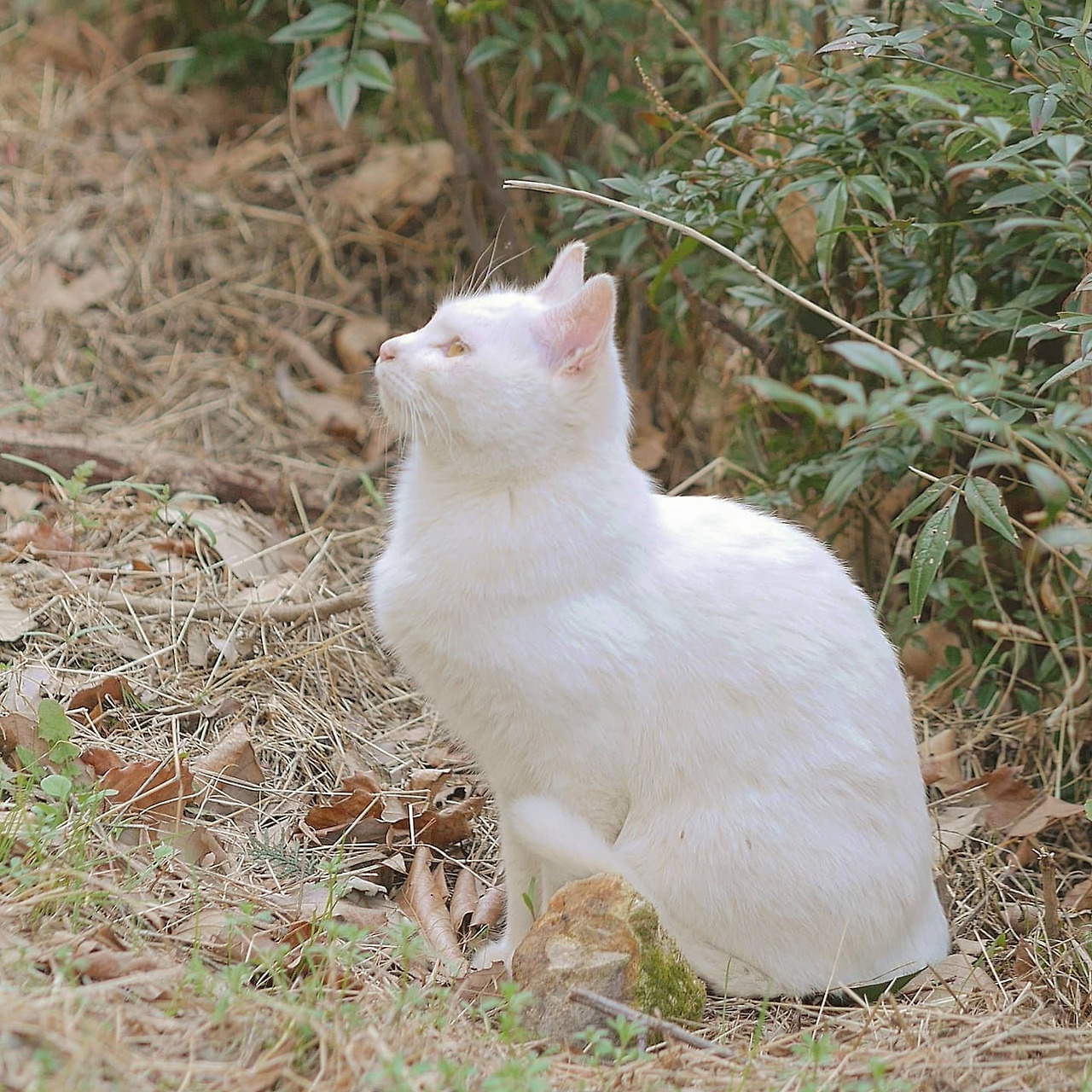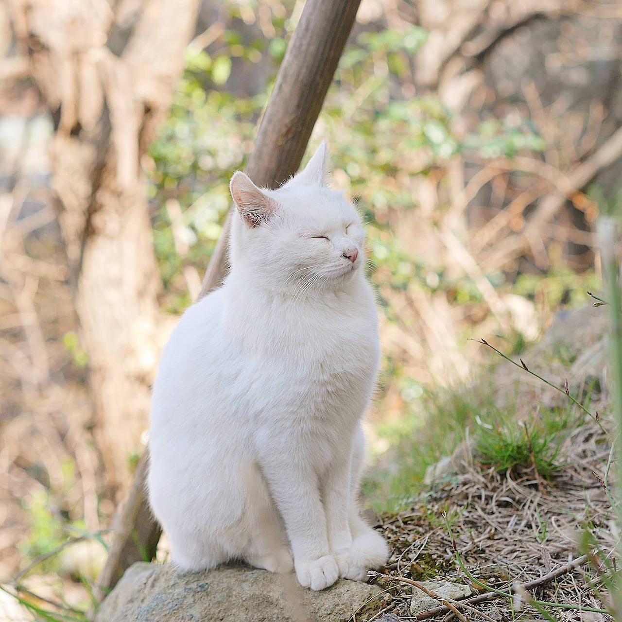 나는 보통은 마리라고 부른다. 그녀의 영역에서 약 50번 정도 이름을 부르며 이곳저곳을 다니다 보면 어디선가 호다닥 하며 뽀얀 얼굴을 드러낸다. 마리는 여기 살고 있는 다른 개체에 비해 아직 작은 편이다. 그리고 새햐얀 털은 어디서든 눈에 띈다. 그래서 마리는 다른 개체의 접근에 매우 민감해하고 잠시도 긴장을 늦추지 않는 모습이다. 한 번은 그런 모습이 안쓰러워 다른 아이를 쫒아 주고 간식을 먹는 동안 지켜주었다. 그런데 그 이후 내가 찾아가면 자꾸 내 앞에서 눈을 감고 식빵을 굽거나 앉아서 낮잠을 잔다. 그래서 그 날 정해진 간식을 다 나눠주고도 그녀가 한 숨 잘 때까지 기다리는 시간이 새롭게 생겨났다. 그 시간 동안 나는 보통 마리에게 이런저런 이야기를 하거나 "마리, 마리"라고 부르며 내가 옆에 있다는 신호를 보낸다.