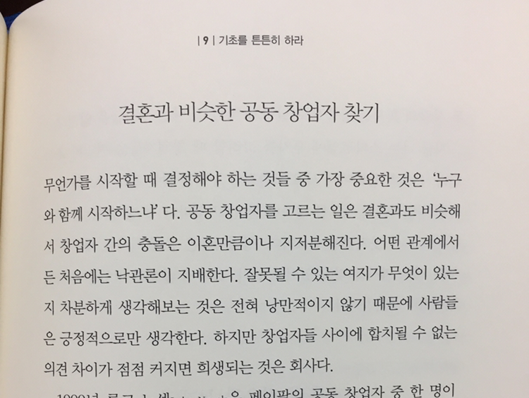 결혼과 비슷한 공동 창업자를 찾아야 한다... 절대적 공감이다. 하루의 절반이상을 함께해야 하는 공동 창업자라면 선택의 기준이 결혼 상대자를 찾는 것과 같아야 하리라.... 창업을 준비하면서 함께 할 파트너를 구할 때 고민했던 부분이라 더더욱 공감이 된다.