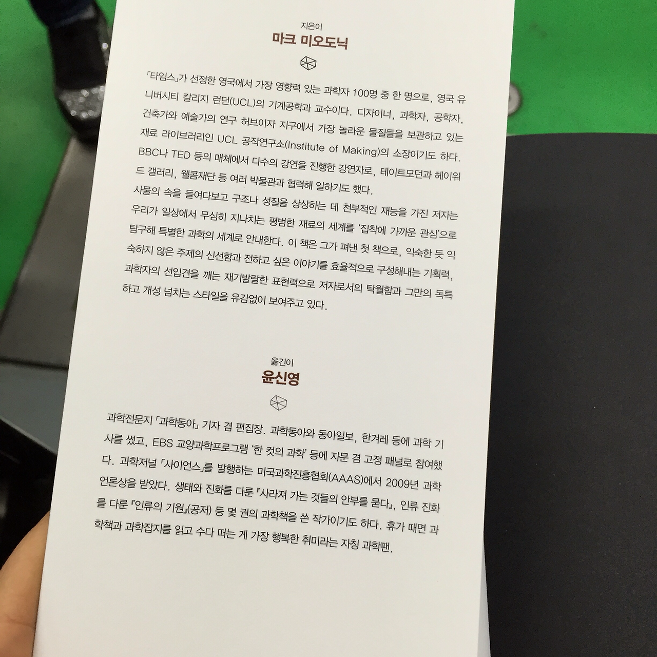 그러던 내게 이 ' 사소한 것들의 과학'은 아주 자연스럽게 관심이 가는 책이었다. 제목이 특히 내게는 매력적이었다. 무겁지 않고 왠지 가벼운 주제의 과학책일 것만 같은 제목에 이끌려 책을 읽기 시작했다.