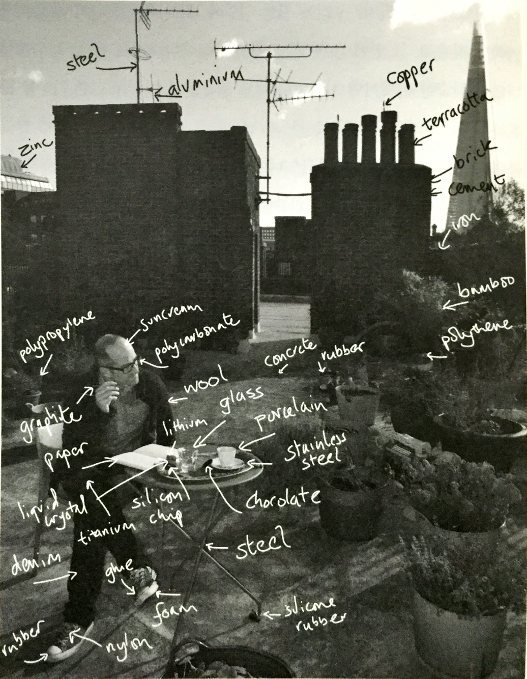 필자의 사진은 아주 평범한 옥상에 앉아 있는 장면이다. 그 사진 속에 보이는 사물들의 재료 속성을 중심으로 재료의 과학적 탐구는 시작된다. 10가지의 재료에 대한 이야기로 구성이 이루어진다. 솔직히 이 10가지 모두내 관심을 끈 것은 아니다.
