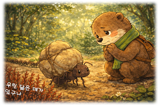 귀담이는 측은한 눈빛으로 개미를 바라보며
