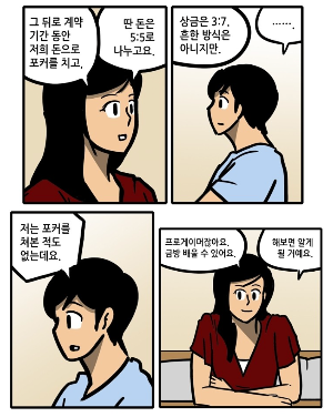 (프로 게이머) 네이버 만화 "텍사스 홀덤"에는 프로 게이머로 활동하다가 포커 프로로 전향한 사람들이 나온다. 극 중에서 포커를 쳐본 적도 없었던 주인공을 스카우트하며 "프로게이머는 금방 배울 수 있다"라고 하는데, 맺고 끊는 것을 잘하는 게 중요하다고 말한다. 실제로 우리나라의 유명한 프로게이머 중에서 포커 플레이어로 전직에 성공한 유명인들이 많다.